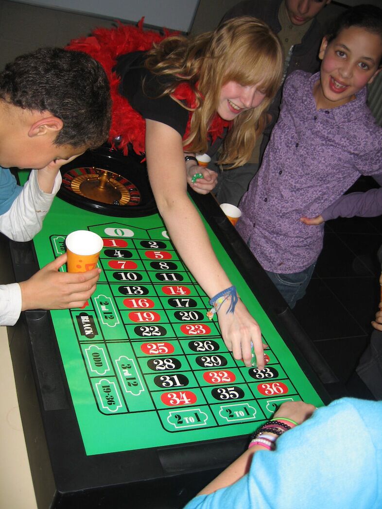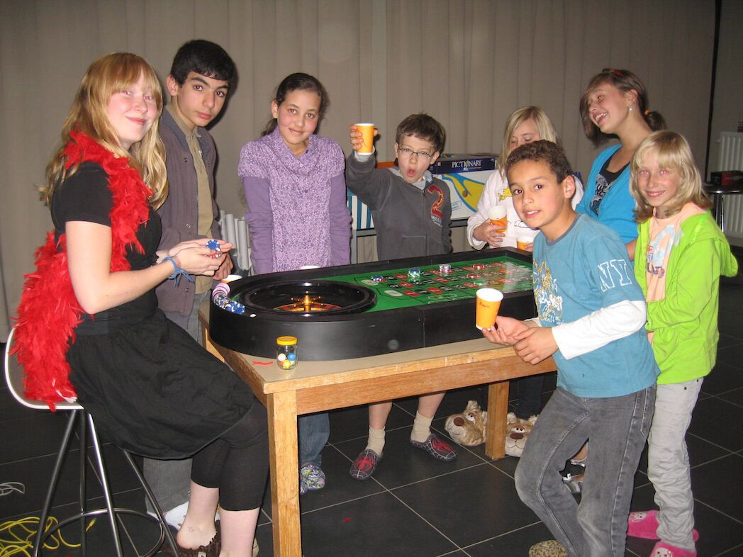 Gisterenavond speelden we casinoavond. Iedereen kreeg een aantal chips en probeerde die om te vermeerderen door een gokje te wagen. Sommigen (waaronder Souleiman) waren al heel snel hun centjes kwijt en moesten terug lenen bij de bank; anderen (waaronder Imane en Steffi) bleven maar chips bijverdienen! Echte gokkers dus :) De enige echte winnaar was Steffi!! Dikke proficiat. Zij mocht met de casino-hostess op de foto.