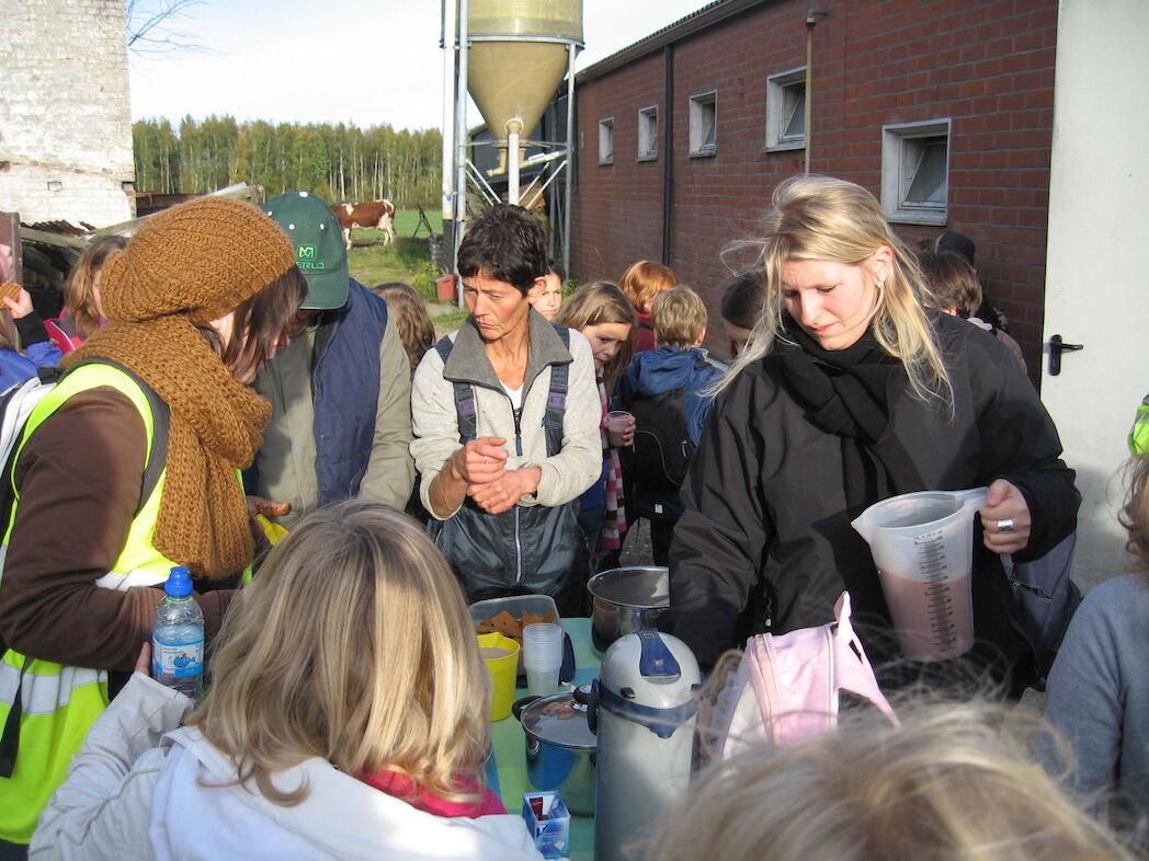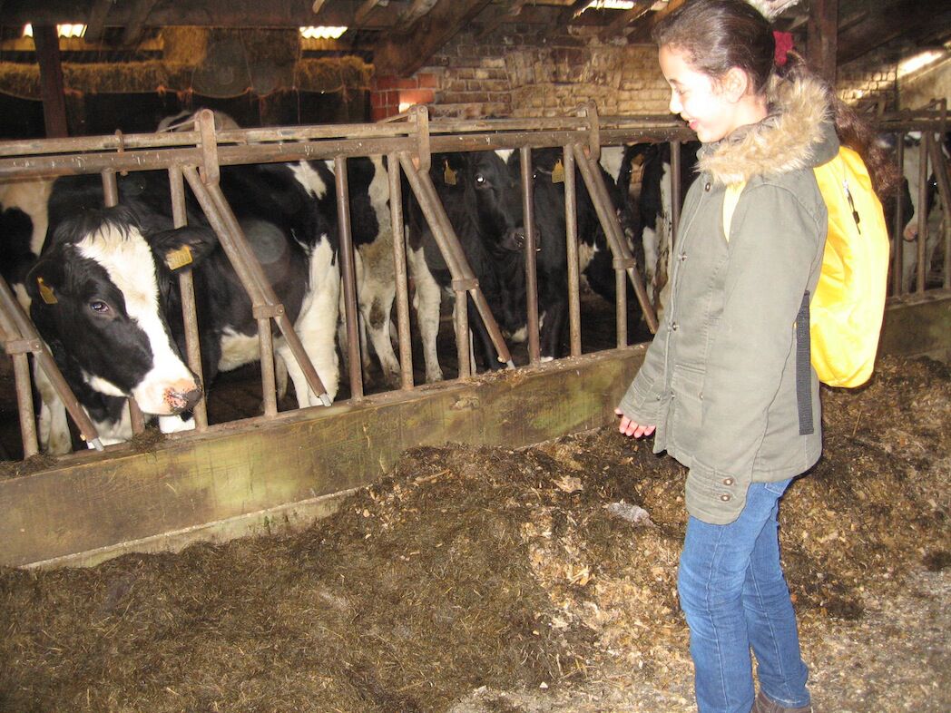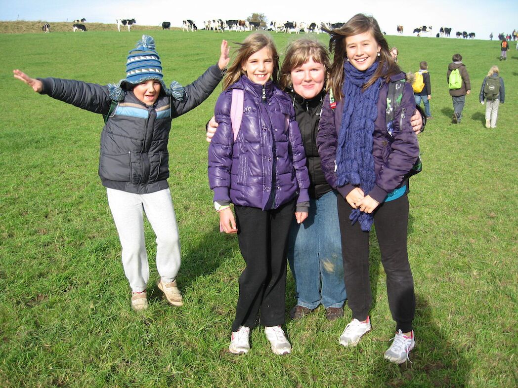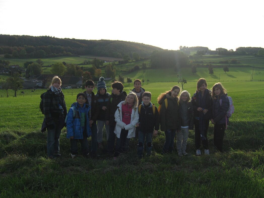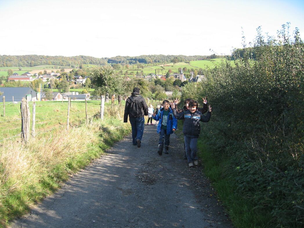 Wat een kilometers hebben we vandaag weer afgelegd!!! 's Morgens na het ontbijt direct onze stapschoenen aangetrokken en op weg waren we. Gelukkig was het zonnetje weer van de partij, wat het stappen toch aangenaam maakte. We gingen naar een melkveebedrijf. de tocht duurde anderhalf uur. Onderweg stopten we regelmatig voor een hapje en een drankje, en ook even poseren voor de camera. Eenmaal aangekomen kregen we een glaasje verse chocomelk en een koekje. De boer legde dan alles uit over de melkkoe. We mochten een kijkje nemen in de stallen en zagen daar een pasgeboren kalfje; zo lief!!! Na de uitleg keerden we terug. Deze keer namen we een kortere weg, door de wei met koeien. Wel opletten want er stond elektriciteit op de draad. Gelukkig waren de juffen er om de draad veilig opzij te houden terwijl we er onder kropen. Ook nog uitkijken voor de vele koeienvlaaien.... Maar iedereen stapte wel flink door en niemand klaagde. Wat een superbende!!!