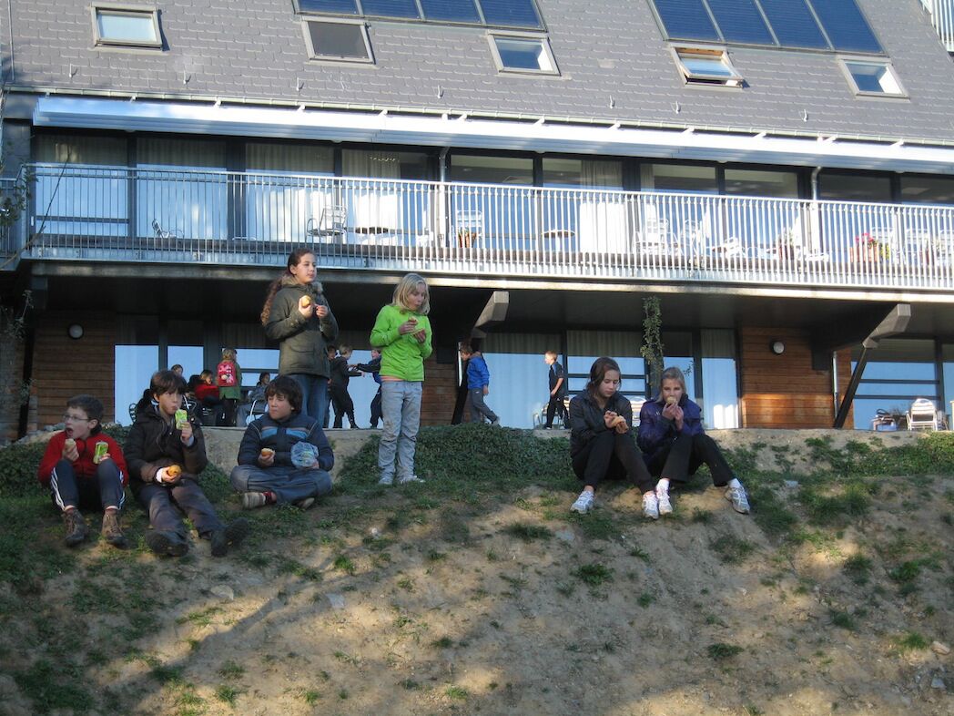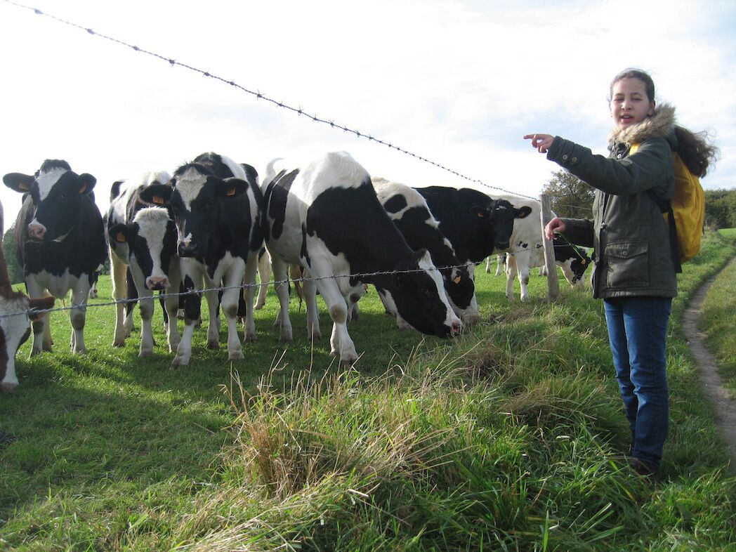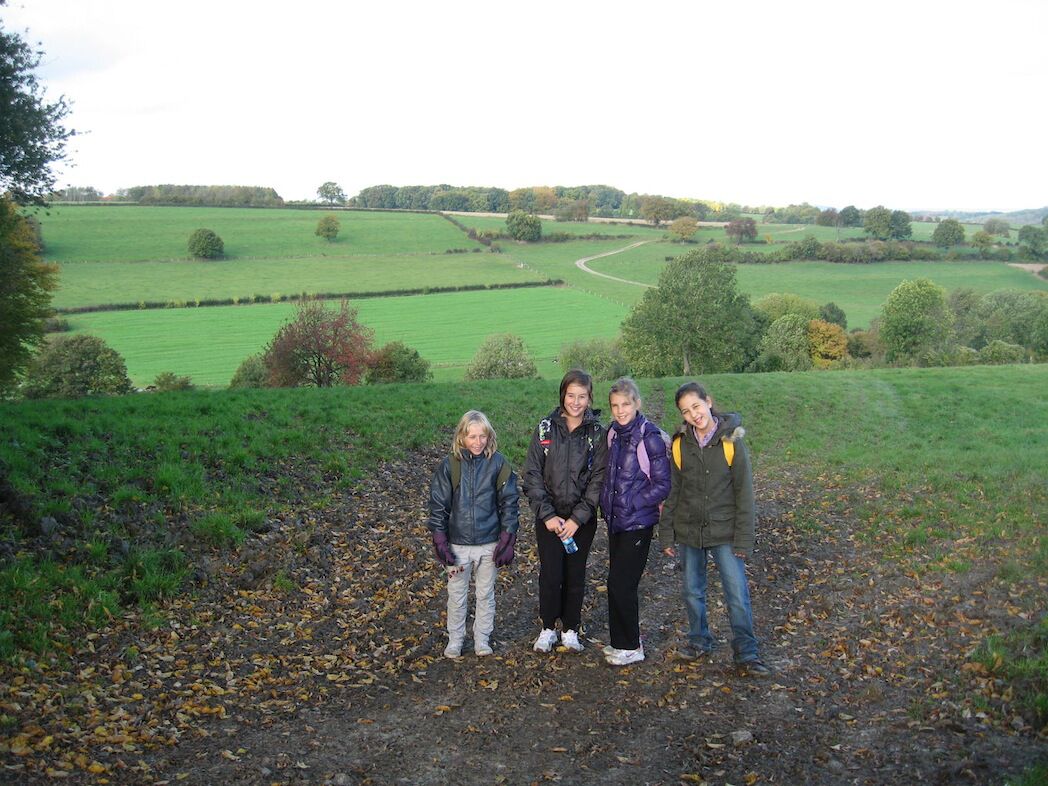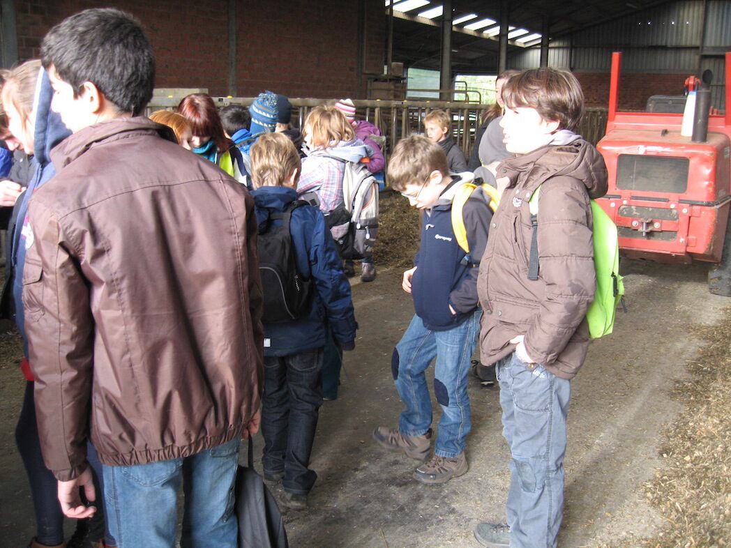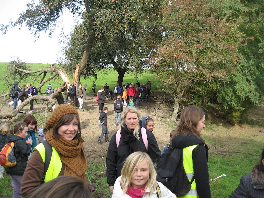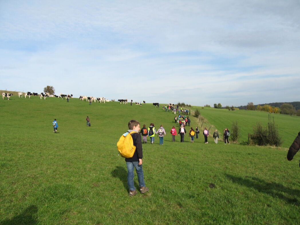 Wat een kilometers hebben we vandaag weer afgelegd!!! 's Morgens na het ontbijt direct onze stapschoenen aangetrokken en op weg waren we. Gelukkig was het zonnetje weer van de partij, wat het stappen toch aangenaam maakte. We gingen naar een melkveebedrijf. de tocht duurde anderhalf uur. Onderweg stopten we regelmatig voor een hapje en een drankje, en ook even poseren voor de camera. Eenmaal aangekomen kregen we een glaasje verse chocomelk en een koekje. De boer legde dan alles uit over de melkkoe. We mochten een kijkje nemen in de stallen en zagen daar een pasgeboren kalfje; zo lief!!! Na de uitleg keerden we terug. Deze keer namen we een kortere weg, door de wei met koeien. Wel opletten want er stond elektriciteit op de draad. Gelukkig waren de juffen er om de draad veilig opzij te houden terwijl we er onder kropen. Ook nog uitkijken voor de vele koeienvlaaien.... Maar iedereen stapte wel flink door en niemand klaagde. Wat een superbende!!!