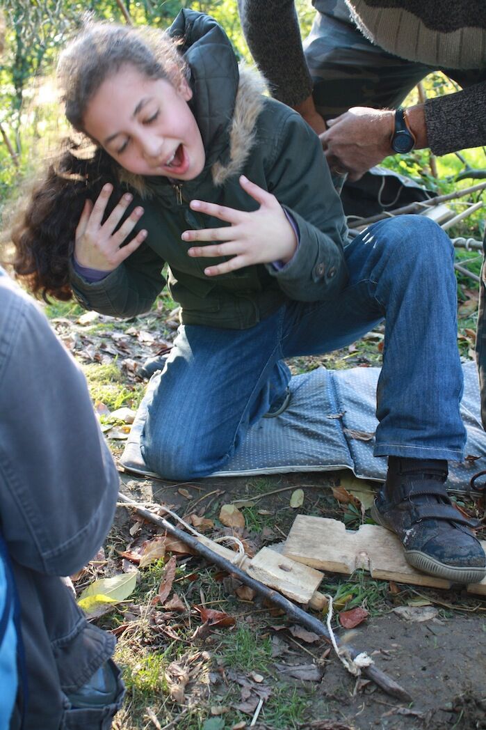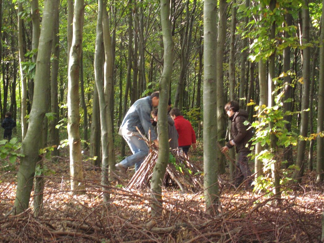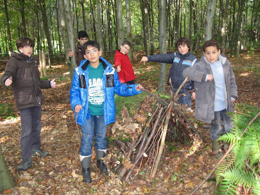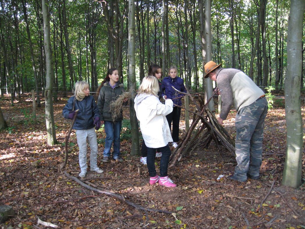 Vandaag brachten we een dag door in het bos. Er kwamen een aantal gidsen ons ophalen. Ze gaven ons wat uitleg en toen vertrokken we richting bos. Onderweg verzamelden we brandmateriaal en nootjes en bessen om te eten. We keken ook naar sporen van dieren. Eenmaal in het bos trokken we onze handen uit de mouwen, en bouwden shelters. We moesten wel opletten dat het goed geïsoleerd was en dat er geen regen binnen kon. We zochten ook naar drinkbaar water. Dat kan je weten als je de beestjes onderzoekt in het water. We hebben een grote dierenvanger: Souleiman ving twee kikkers vandaag!! Vuur heeft voor ons ook geen geheimen meer want we mochten allemaal proberen vuur te maken. Eerst mochten we proberen met een boog en hout, daarna kwam te magnesiumstick tevoorschijn. Het was een beetje wennen aan de techniek maar toen lukte het bijna iedereen. Deze avond staat er een quiz op het programma: de meisjes tegen de jongens. Het menu: preisoep macaroni