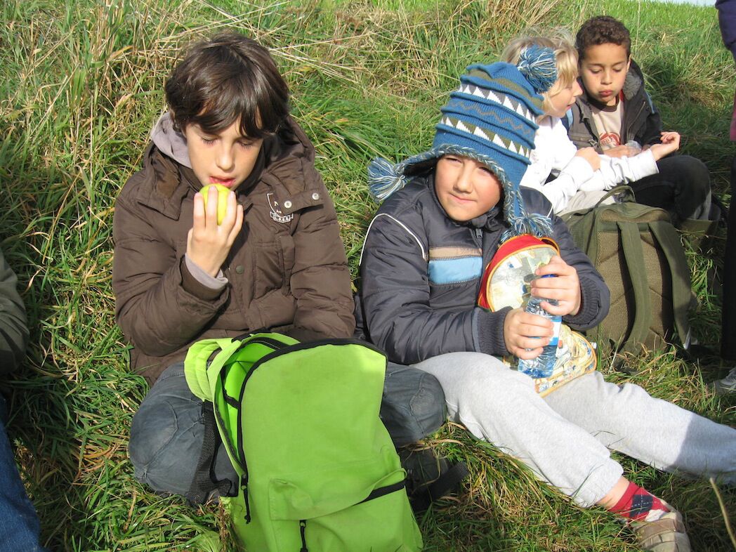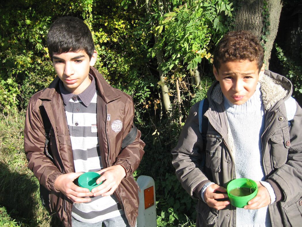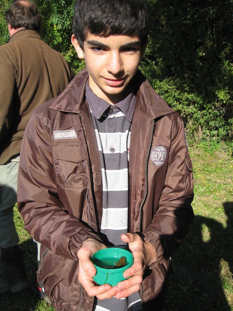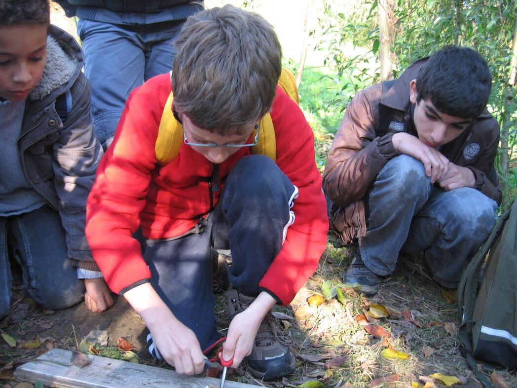 Vandaag brachten we een dag door in het bos. Er kwamen een aantal gidsen ons ophalen. Ze gaven ons wat uitleg en toen vertrokken we richting bos. Onderweg verzamelden we brandmateriaal en nootjes en bessen om te eten. We keken ook naar sporen van dieren. Eenmaal in het bos trokken we onze handen uit de mouwen, en bouwden shelters. We moesten wel opletten dat het goed geïsoleerd was en dat er geen regen binnen kon. We zochten ook naar drinkbaar water. Dat kan je weten als je de beestjes onderzoekt in het water. We hebben een grote dierenvanger: Souleiman ving twee kikkers vandaag!! Vuur heeft voor ons ook geen geheimen meer want we mochten allemaal proberen vuur te maken. Eerst mochten we proberen met een boog en hout, daarna kwam te magnesiumstick tevoorschijn. Het was een beetje wennen aan de techniek maar toen lukte het bijna iedereen. Deze avond staat er een quiz op het programma: de meisjes tegen de jongens. Het menu: preisoep macaroni