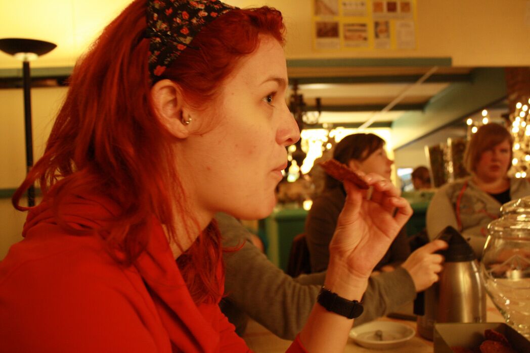 We vertrokken 's morgens richting Abdijkerk. Daar aangekomen stond de oma van Arnout ons al op te wachten. Zij werkt daar als vrijwilligster en was bereid om ons een woordje uitleg te geven. Eenmaal binnen konden we onze ogen de kost geven. We luisterden aandachtig naar Magda die ons vertelden waarvoor de wereldwinkel eigenlijk staat, welke producten ze verkopen, uit welke landen die producten allemaal komen,... Daarna mochten we even proeven van lekkere chocolade en maniokchips. Mmmm, dat smaakte naar meer....