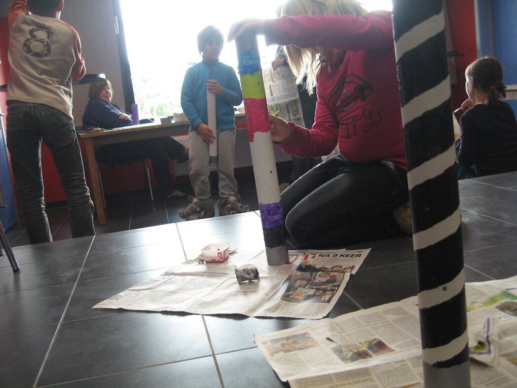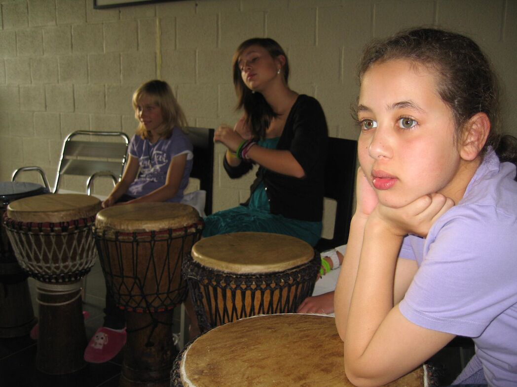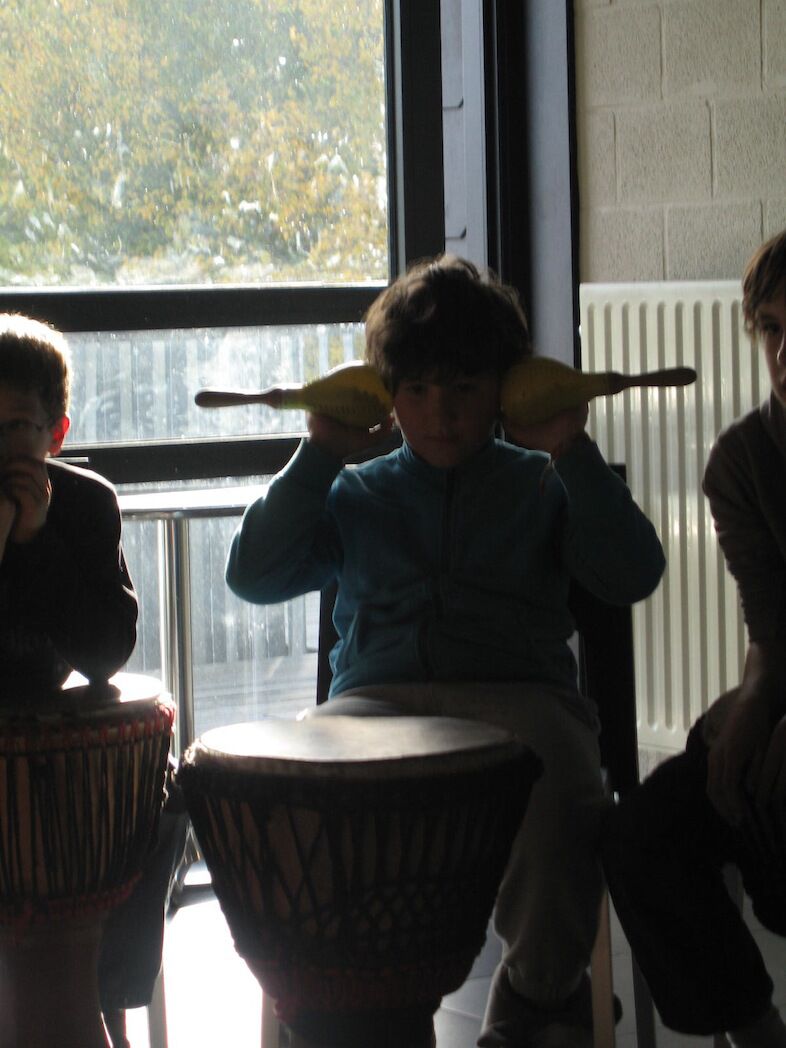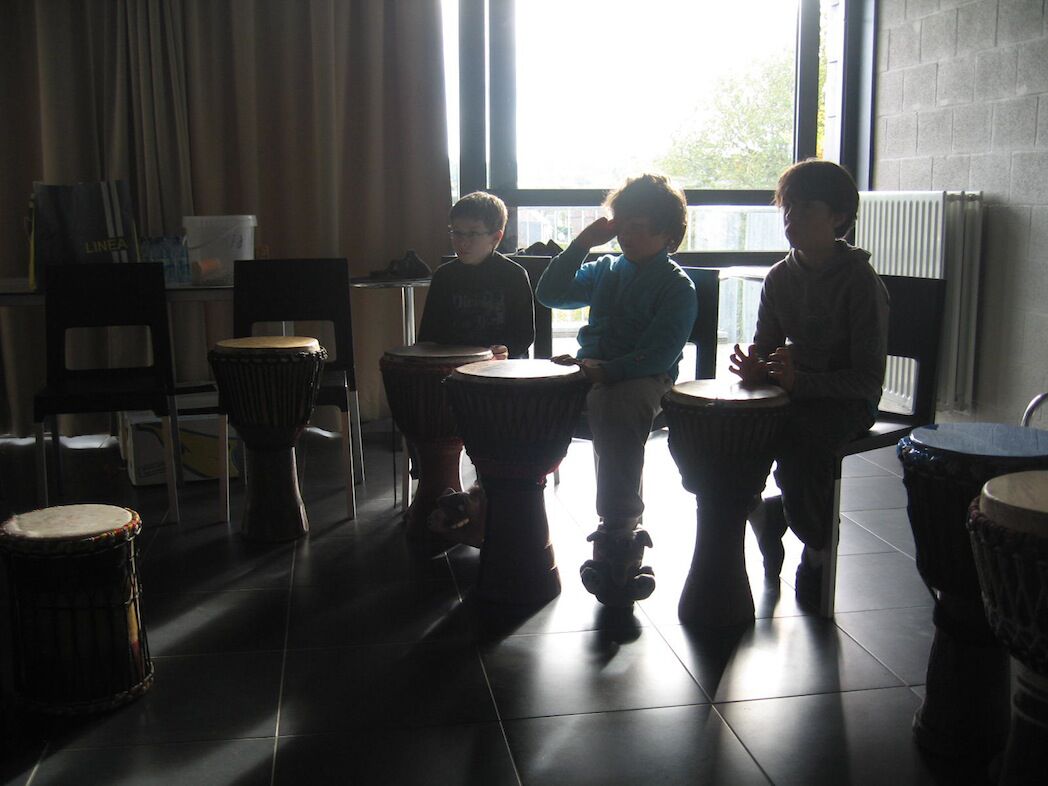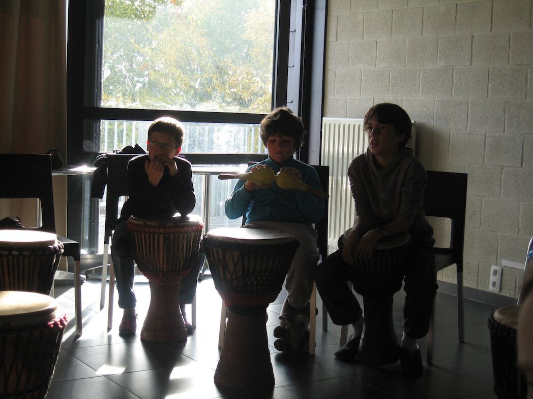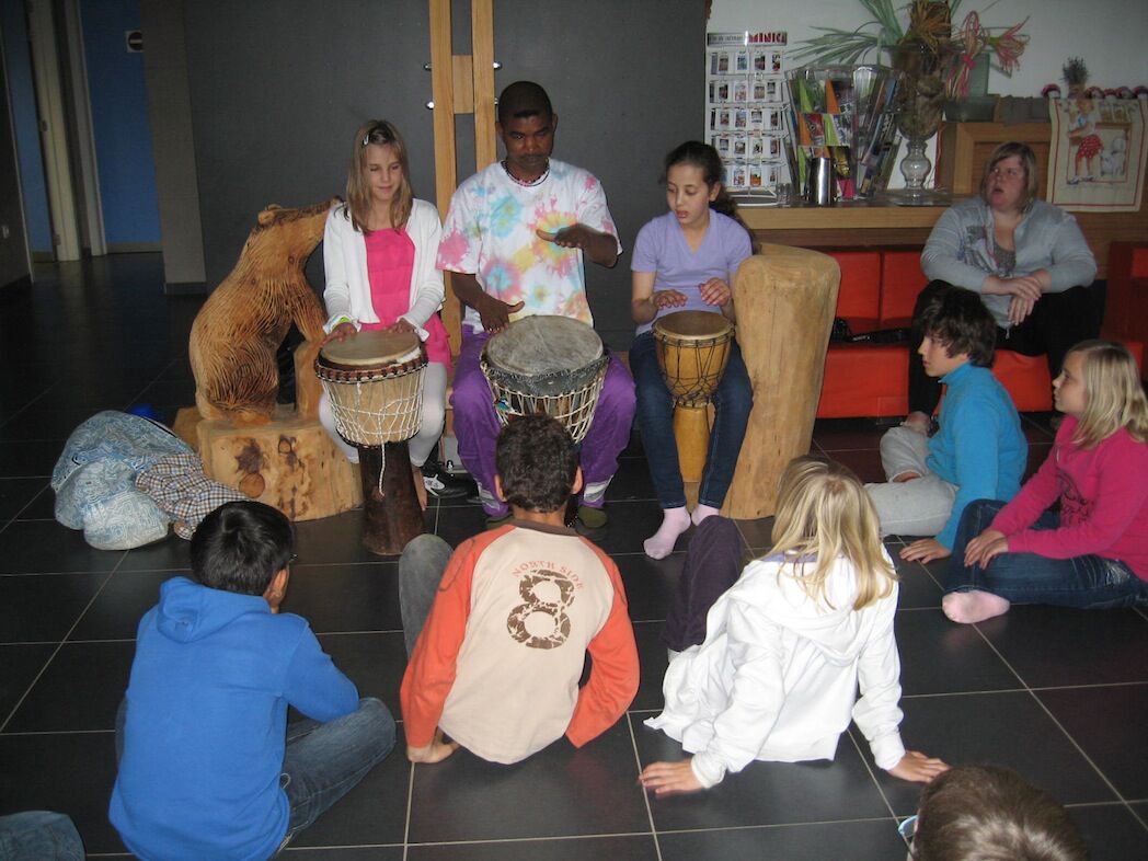 In de namiddag was het Afrika-thema. We deden drie verschillende activiteiten: - afrikaanse dans: wat niet bij iedereen zo vlot en sierlijk verliep - Djembé: wat deed dat zeer aan de handen; maar wel leuke ritmes - regenbuizen maken: we kunnen nu regen toveren