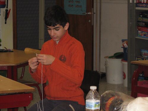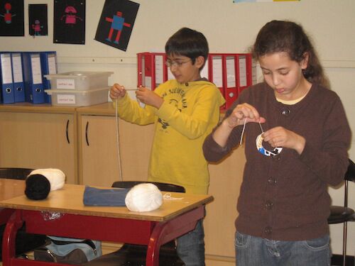 En vandaag stond er nog meer op het programma: dikke truiendag. De verwarming stond af, en we hadden een extra pull of sjaal aan. (Gelukkig was het geen dikke truiendag toen het nog zo vroor, dan zouden we het wel gevoeld hebben) We deden een wedstrijdje 'langste' en 'origineelste' sjaal. Voor de langste sjaal was Assim duidelijke winnaar, met een sjaal van 5,11 m lang! En Sarah mocht de prijs van origineelste in de wacht slepen.