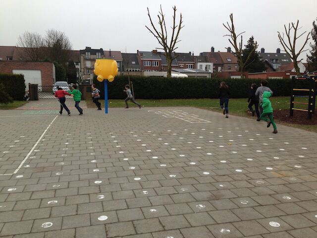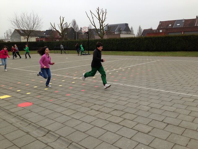 Nu komt de bloedsomloop aan de beurt. We zien dat er allemaal blauwe lijnen op onze armen lopen. We gaan op zoek naar de slagader en voelen ons bloed kloppen in onze pols of hals. We onderzoeken het verschil in rust en na een inspanning (we lopen enkele rondjes op de speelplaats), en we vergelijken de hartslag met andere leeftijden. Na een tijdje na de inspanning vermindert onze hartslag terug, hij herstelt zich.