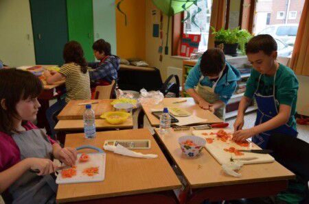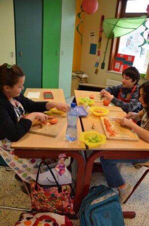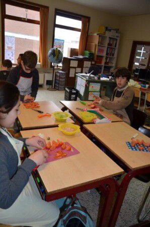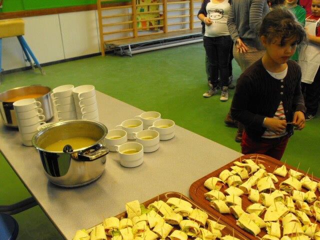 Naar aanleiding van het maanpunt houden we een gezonde paasbrunch en smullen van elkaars hapjes. 1ste graad: sandwich-muisjes 2de graad: soep 3de graad: wraps