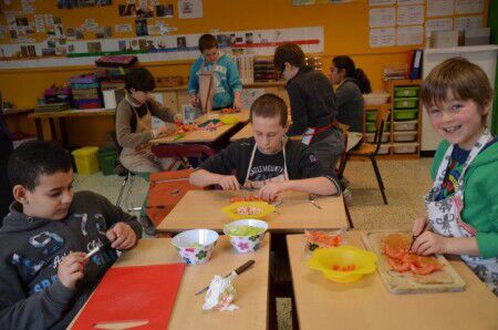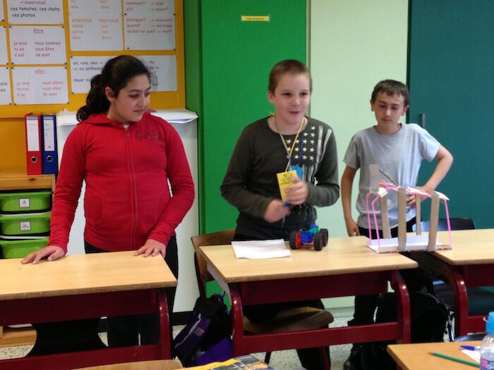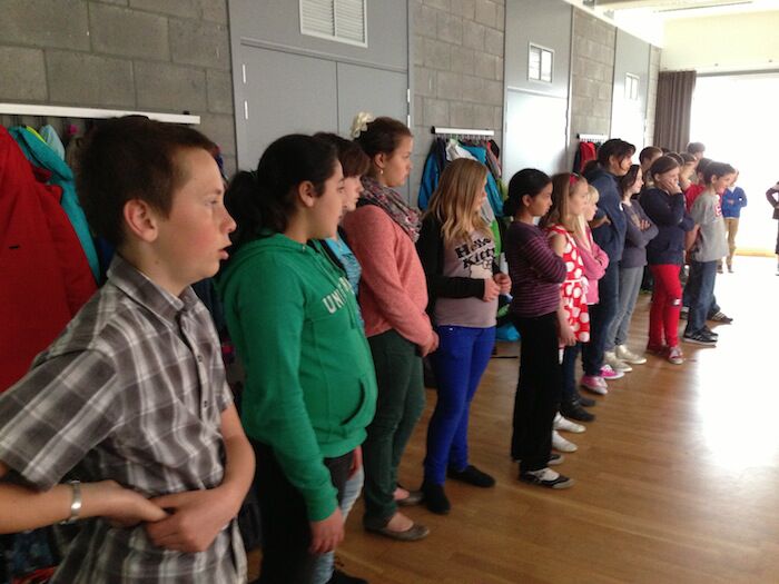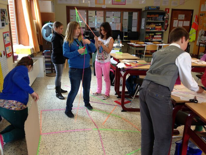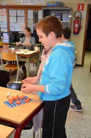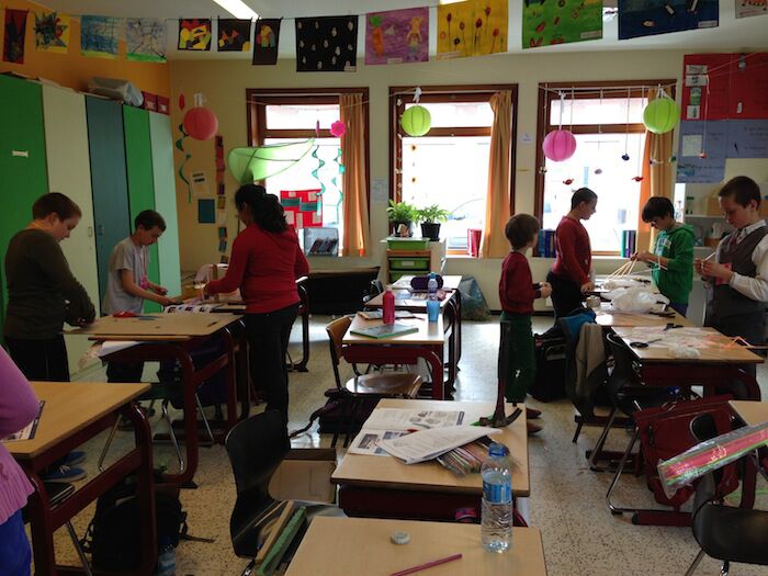 Vandaag komen de kinderen van het vierde leerjaar al eens een kijkje nemen in hun nieuwe klas. ze krijgen al een eerste Franse les, want dat zal nieuw zijn volgend jaar. Ze leerden al tellen tot 10, goeiendag zeggen en zichzelf kort voorstellen.