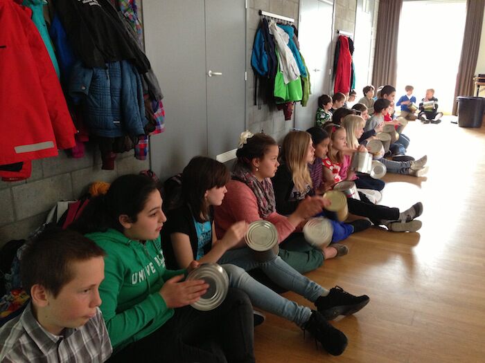 We zingen de longen uit ons lijf tijdens children of the street. Eerst kregen we een workshop eco-percussie voorgeschoteld. Daar gingen we aan de slag met afvalmateriaal zoals blikken en vuilbakken. Nadien gingen we naar de zaal van de Plomblom waar heel veel scholen aanwezig waren om samen de liedjes te zingen.