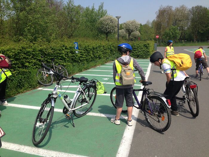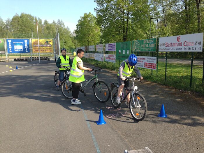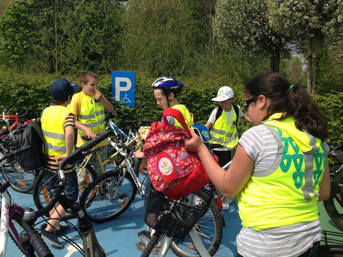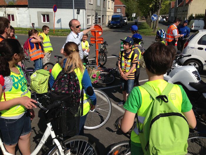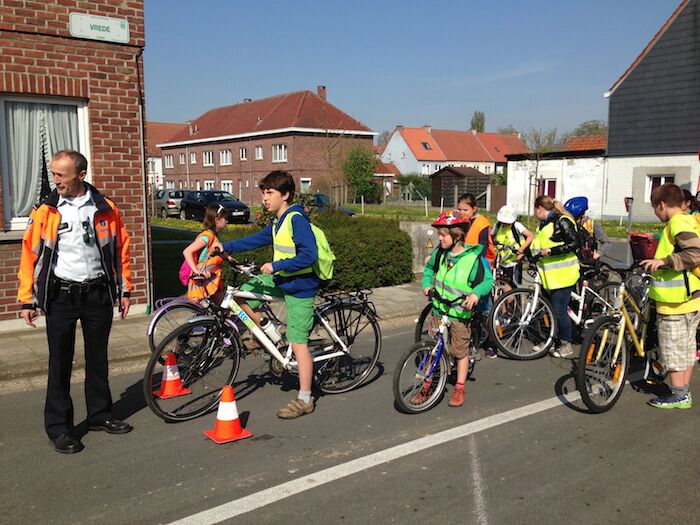 Wat een stralende dag!!Ideaal weertje om de fiets uit te halen en een tochtje te maken. Eerst naar de sporthal om behendigheidstest en hindernissenparcours te volgen. In de straten aan de wijk waren enkele straten afgezet en was er een 'echt' verkeerspark. De politie hield een oogje in het zeil, regelde het verkeer en deelde een aantal aanmaningen uit! In de namiddag zetten we onze tocht naar de Gavers in.