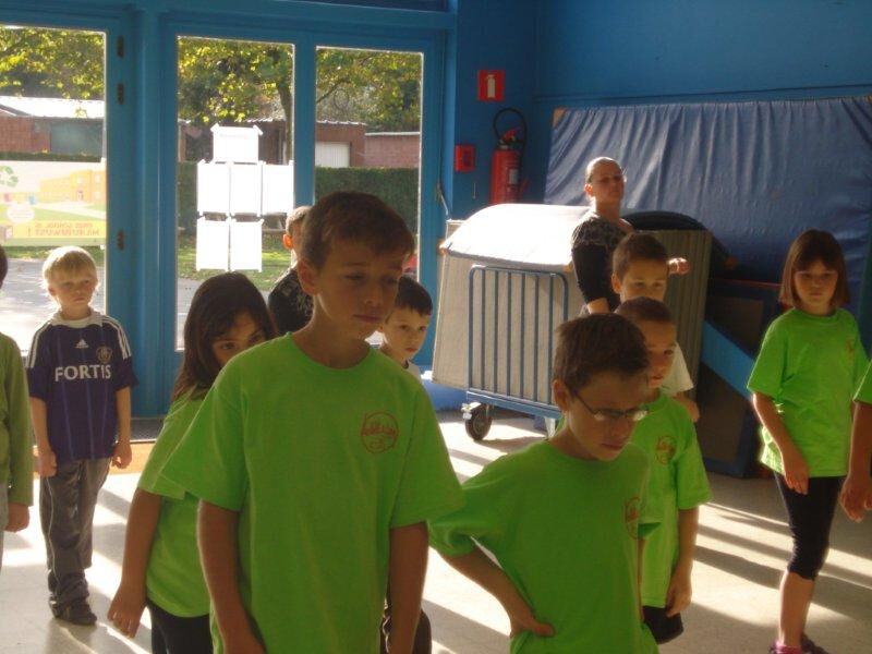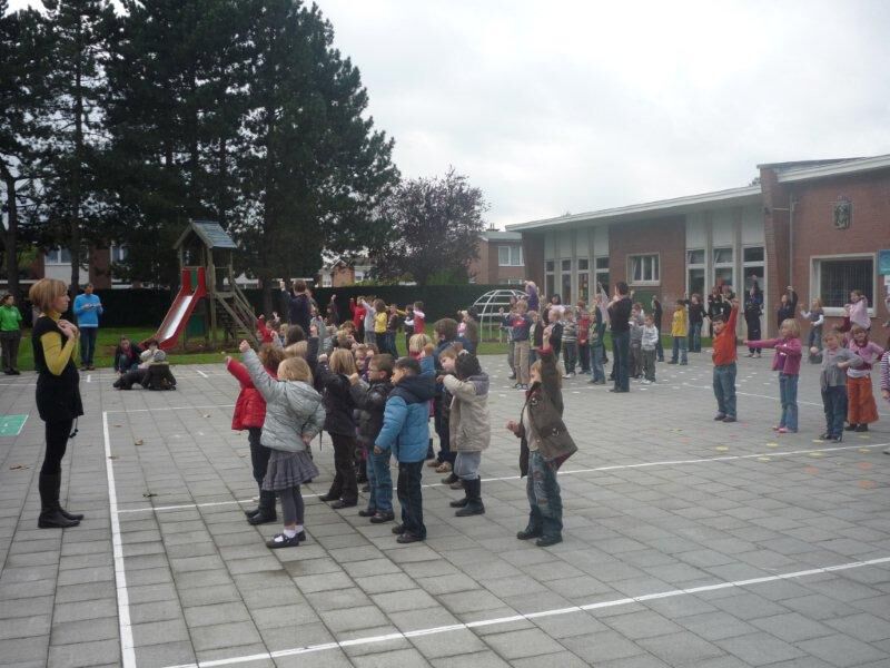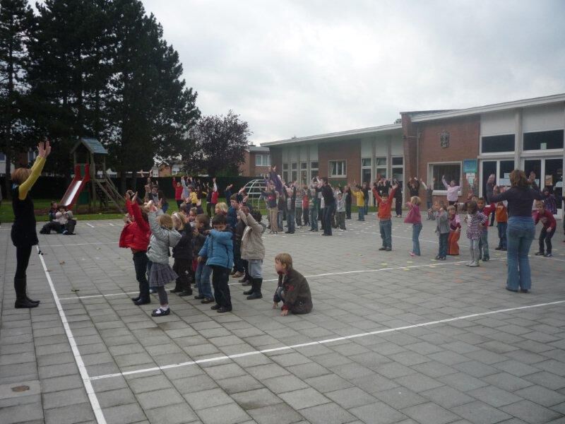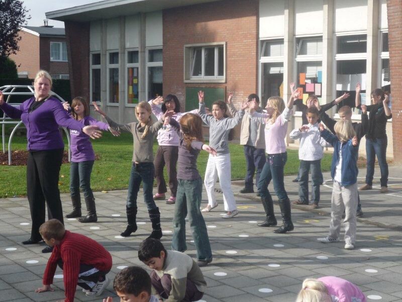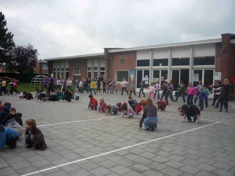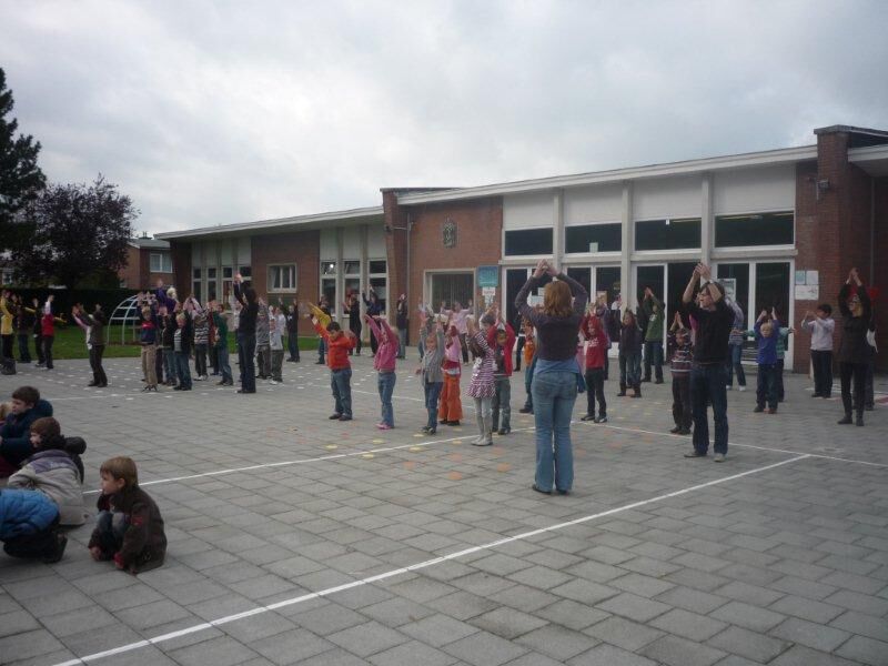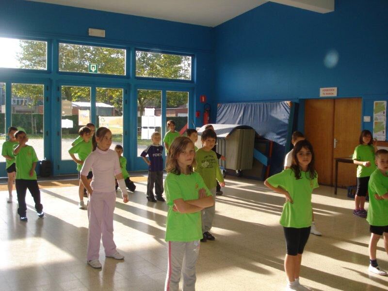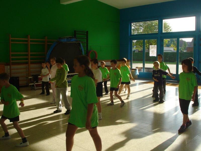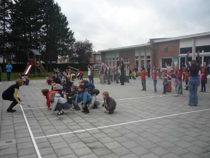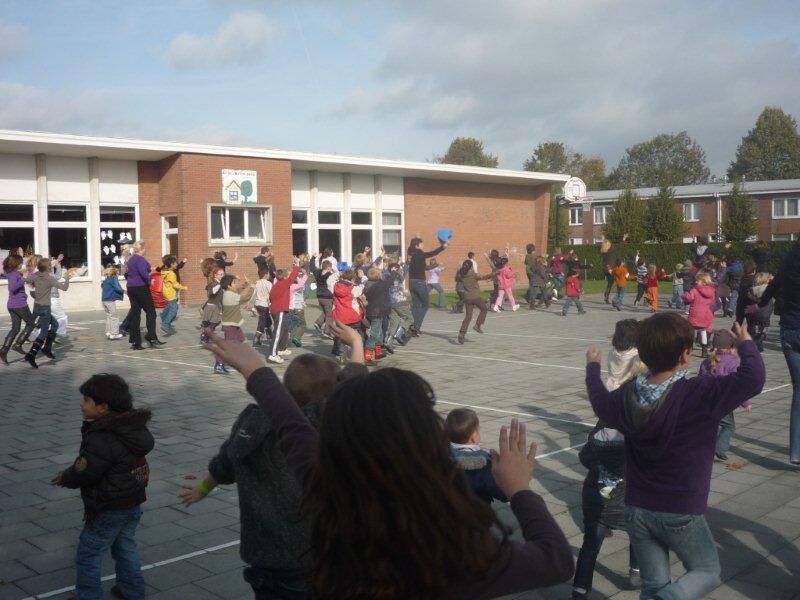 Vandaag kregen we (de leerlingen en de twee juffen) Zumbales van juf Daniëlle. Eerst warmden we een beetje op om er daarna volledig in te vliegen. De juf deed eerst alle bewegingen voor zonder muziek om ze daarna op muziek te doen. We deden ons uiterste best en waren erg moe van al dat gedans. Juf Daniëlle, nogmaals bedankt voor dit superleuk beweegmoment!