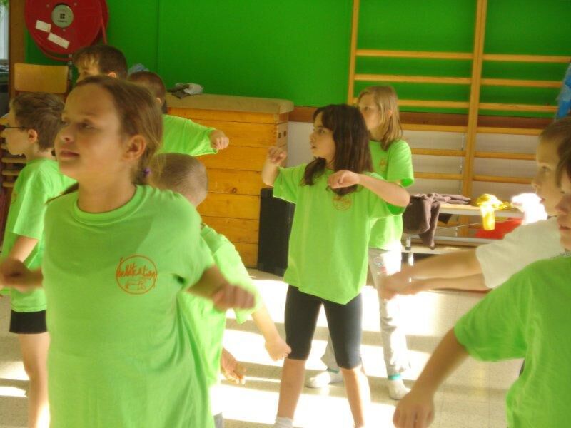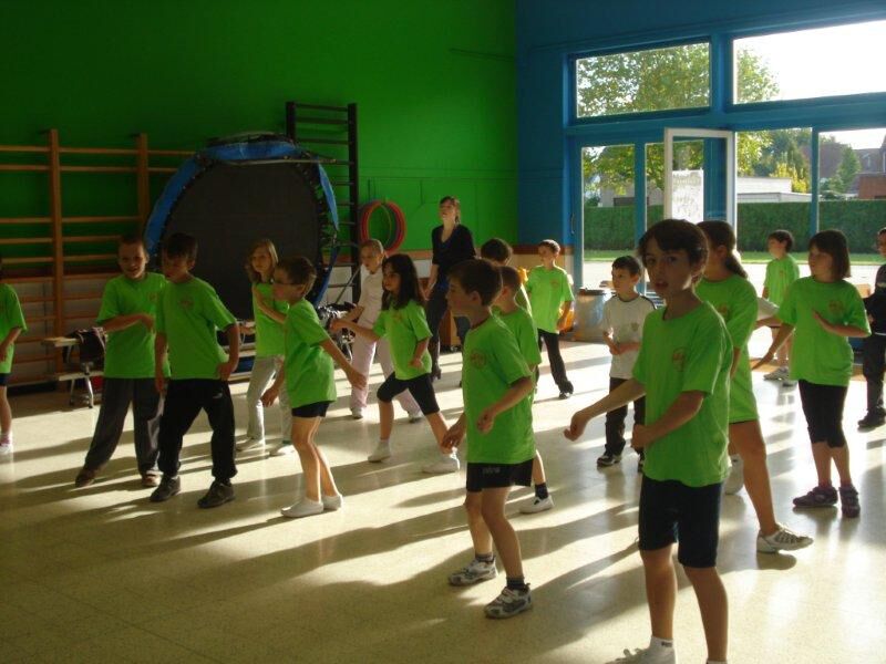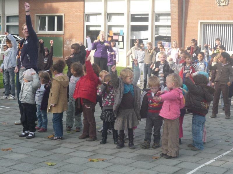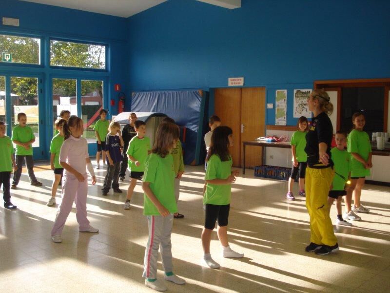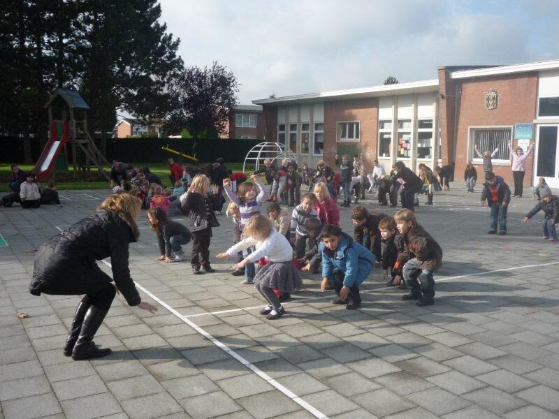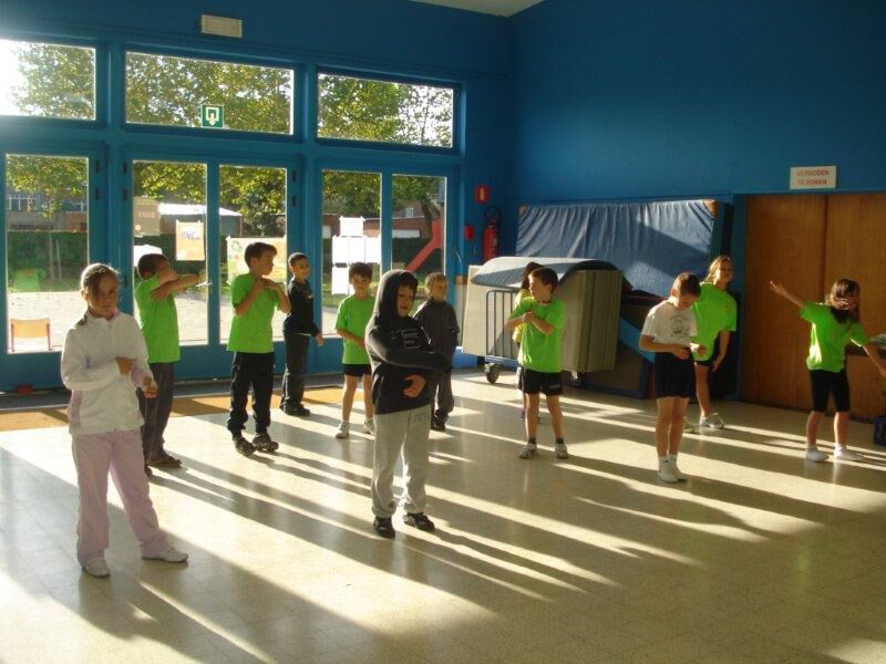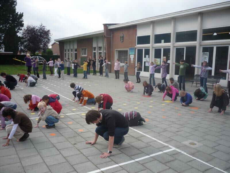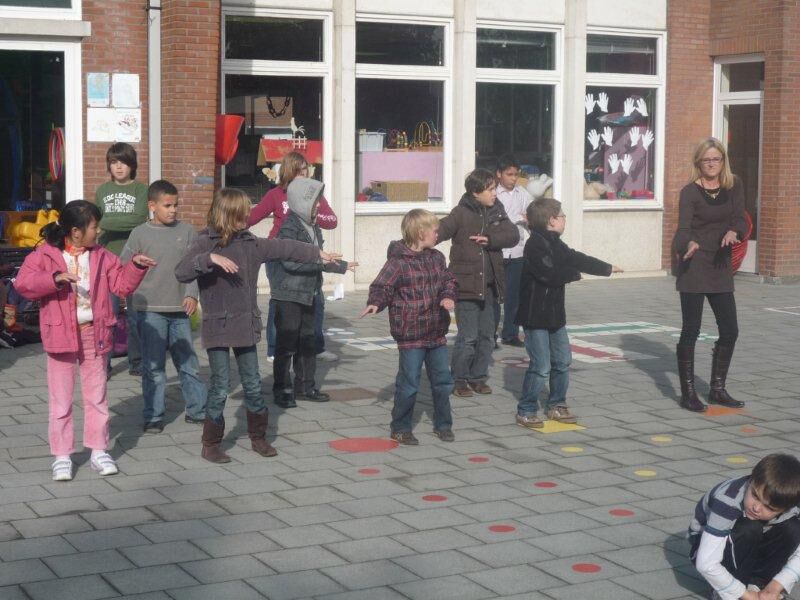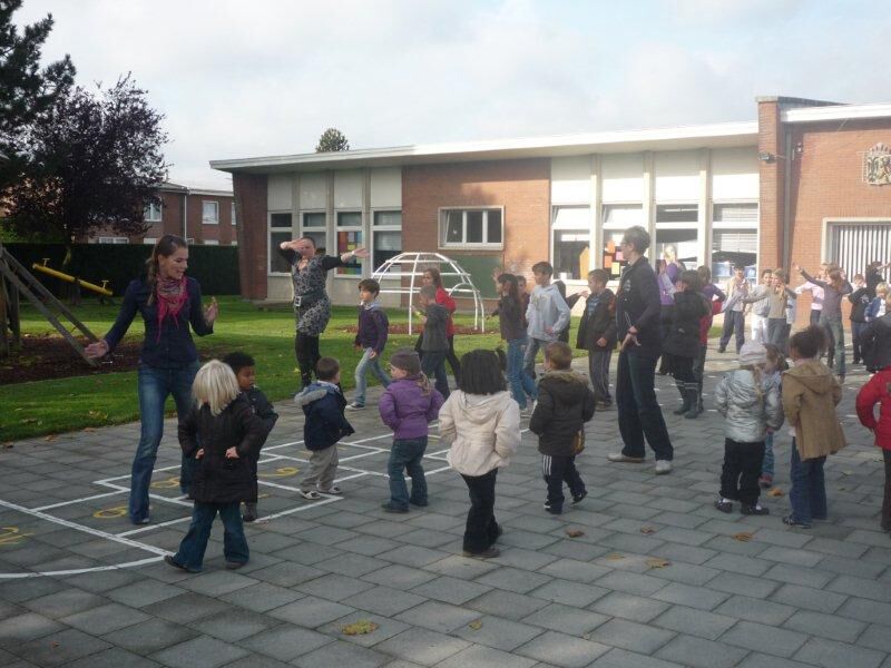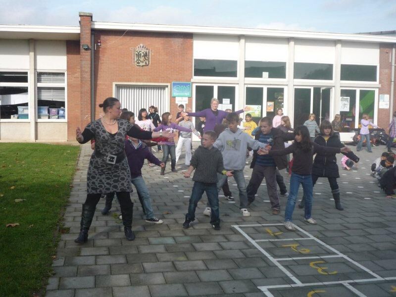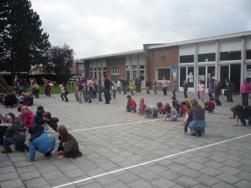 Vandaag kregen we (de leerlingen en de twee juffen) Zumbales van juf Daniëlle. Eerst warmden we een beetje op om er daarna volledig in te vliegen. De juf deed eerst alle bewegingen voor zonder muziek om ze daarna op muziek te doen. We deden ons uiterste best en waren erg moe van al dat gedans. Juf Daniëlle, nogmaals bedankt voor dit superleuk beweegmoment!