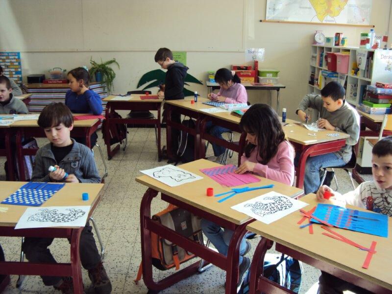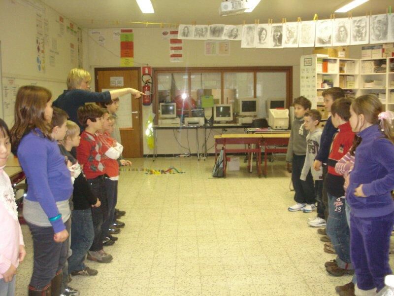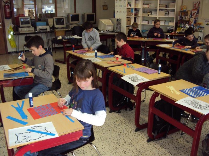 -        -   Gekleurde stippen voor het lager (in navolging van de kleuters).