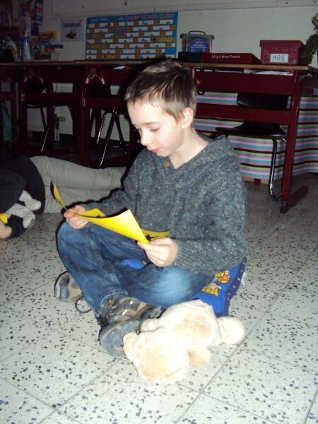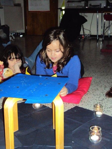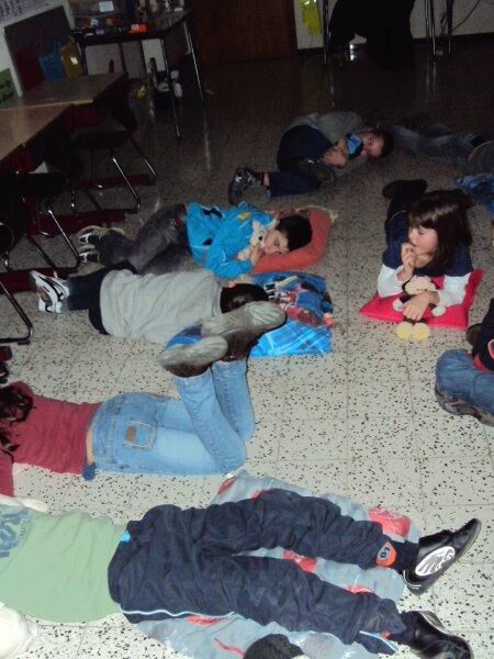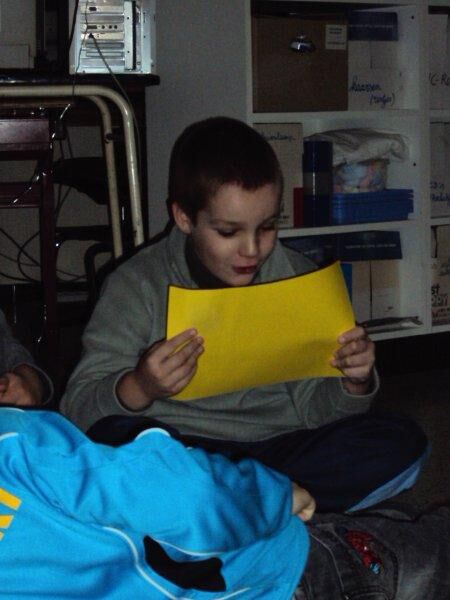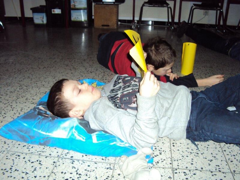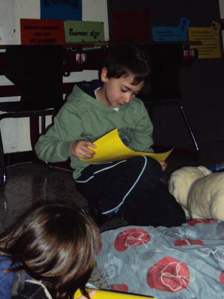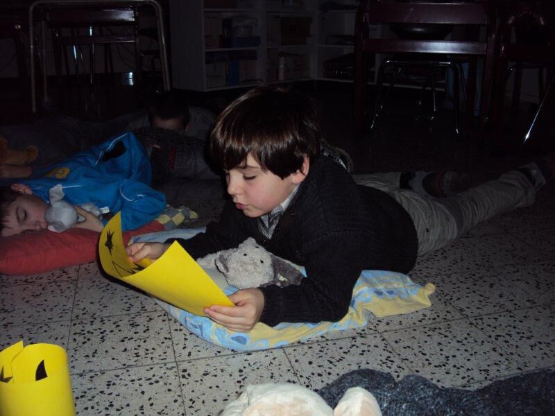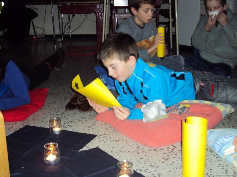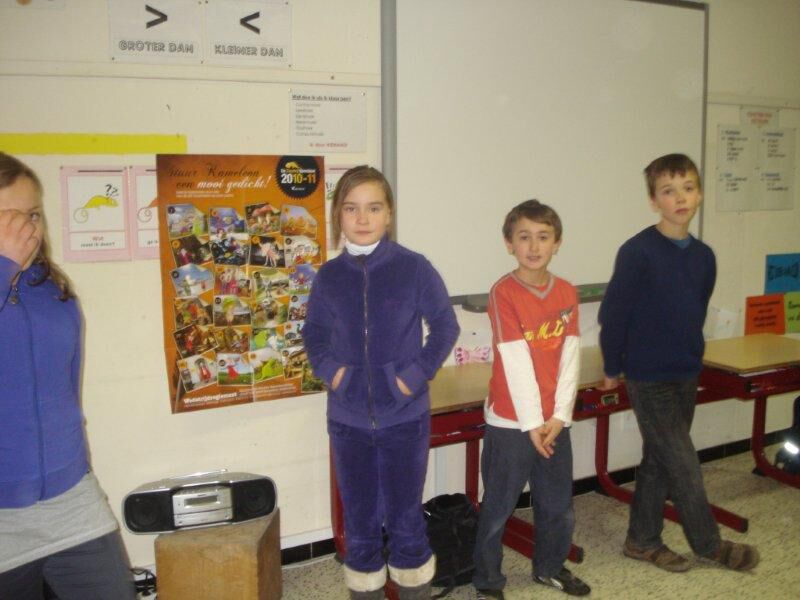 Toen we deze ochtend onze klas binnenstapten was het er pikdonker. Enkel in het midden van de klas stond een klein tafeltje omringd door 10 theelichtjes. Dit had natuurlijk alles te maken met gedichtendag die dit jaar in het teken van ‘NACHT’ stond. We mochten met ons kussen en onze knuffel verschillende manieren van slapen uitproberen en beluisterden het gedicht ‘Zeven manieren’. Daarna speelden we de 7 manieren (om te slapen) uit het gedichtje ook na. Er lagen ook nog leuke en bangelijke nachtgedichten. We kozen er elk één en droegen het voor.