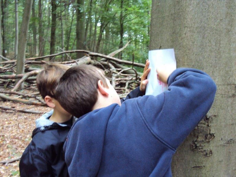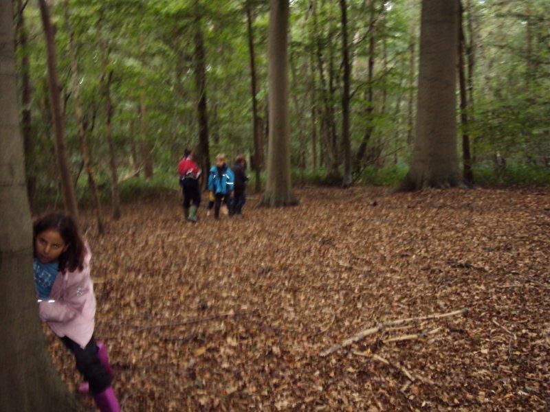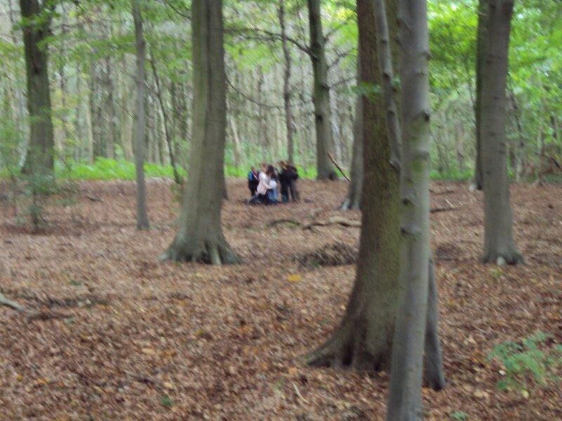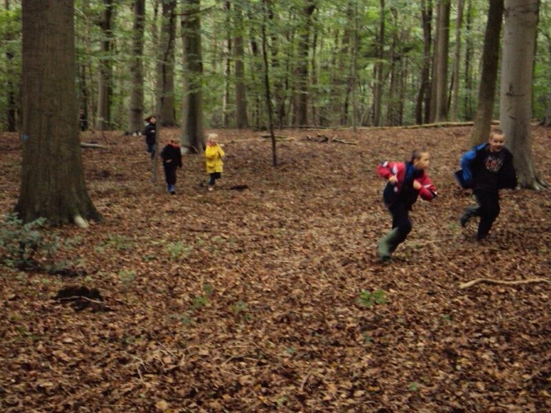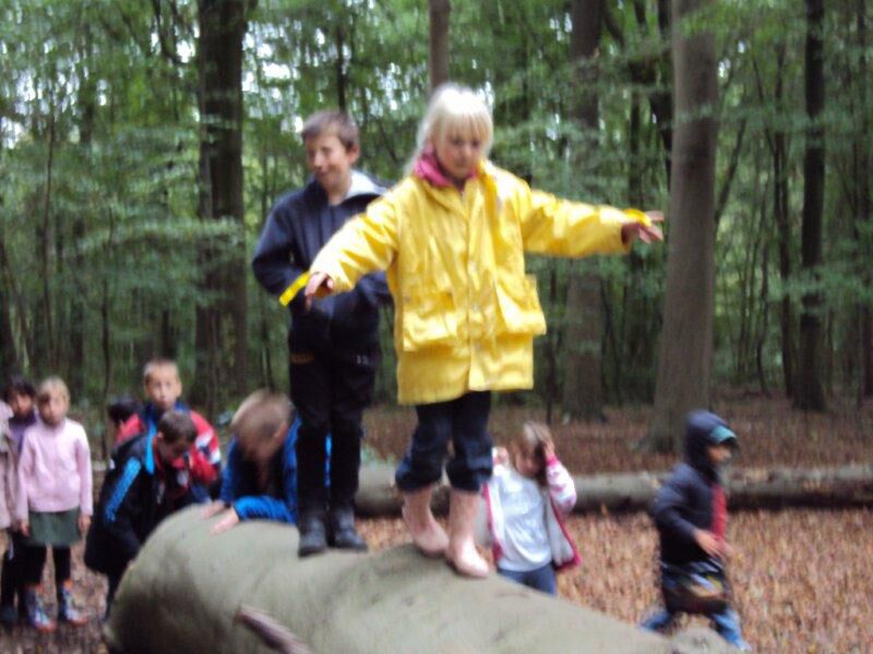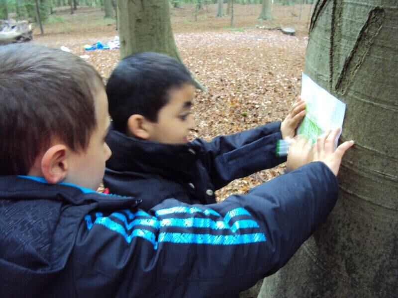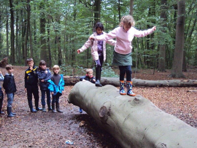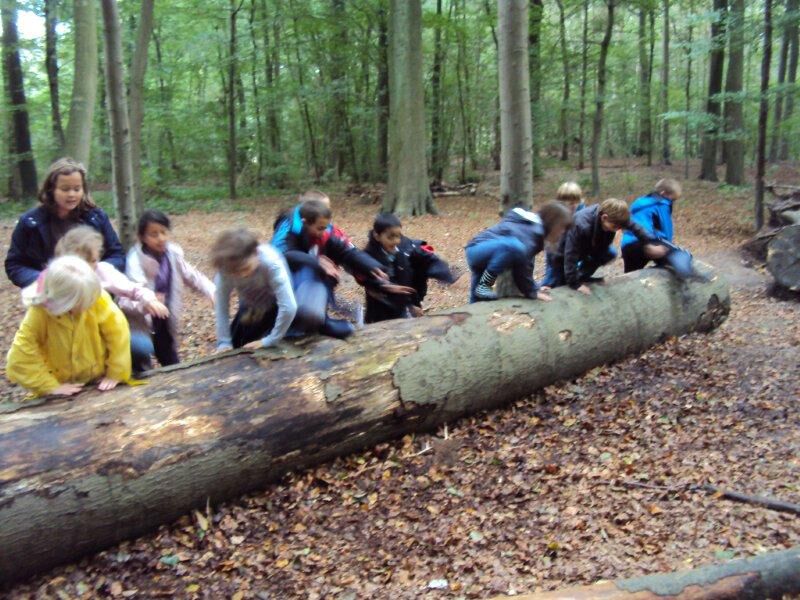 Samen met de kleuters en de eerste graad trokken we naar het Neigembos. Na het beklimmen van de grote trap zochten we een goed plaatsje om aan het werk te gaan. We speelden een groot ganzenbordspel waarbij we allerlei opdrachten moesten doen. We zochten vier verschillende blaadjes, het allermooiste herfstblad, sprongen over boomstammen, maakten een afdruk van boomschors, wandelden over een boomstam,.... Als afsluiter speelden we bos-stratego en rolden we enkele kleine heuveltjes af.