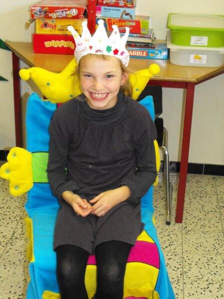 Elke klas zong een liedje voor de sint waarvoor we beloond werden met een heerlijk zakje vol lekkers. De sint had ook nog cadeautjes mee voor de klas... Zo kregen we het spel woordzoeker, twee ballen, een doos domino express, nieuwe strijkparels, een magneetspel, een spiegelspel, een tafelspel en het spel 'pinguins on ice'.