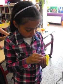 Deze namiddag was het dan eindelijk zover! We deden de brief die juf had ontvangen open en wat daarop stond, deed heel wat wenkbrauwen fronsen... De brief was van de SuperWereldMol. Hij doet heel graag onderzoek naar voorwerpen uit vreemde landen en had daarbij onze hulp nodig. We moesten in groepjes de voorwerpen onderzoeken en een fiche invullen. Onze bevindingen moeten we dan tonen aan de SWM, want hij nodigde ons vriendelijk uit om op donderdag 3 mei bij hem op bezoek te komen!