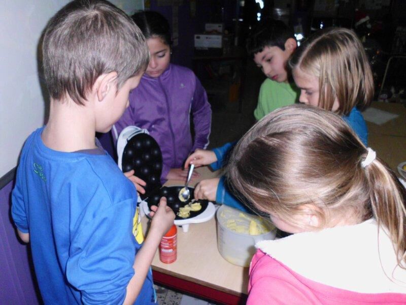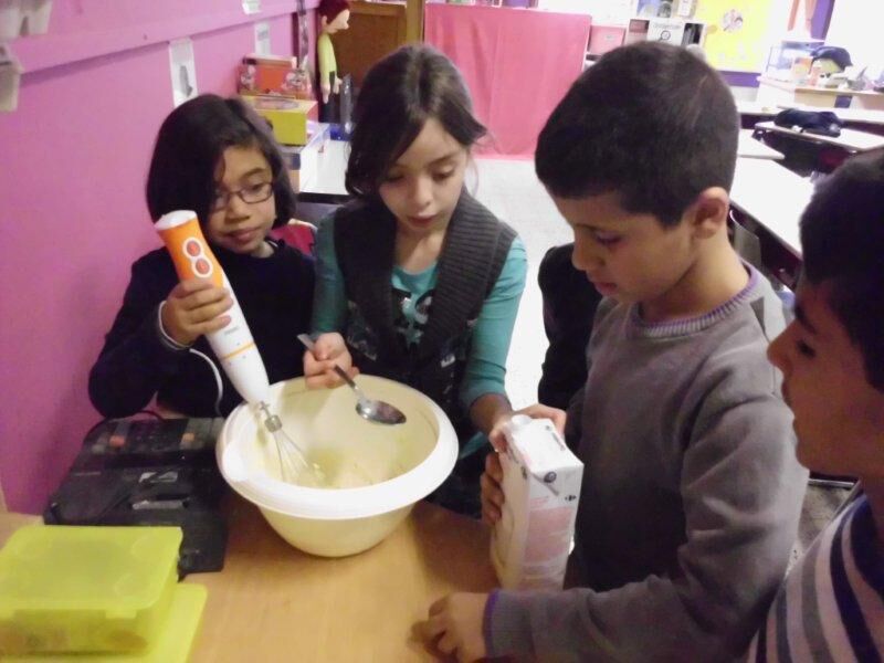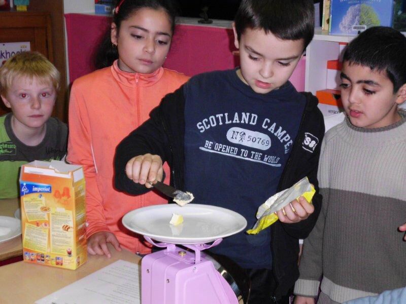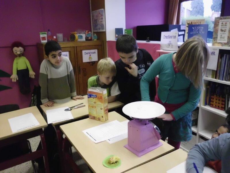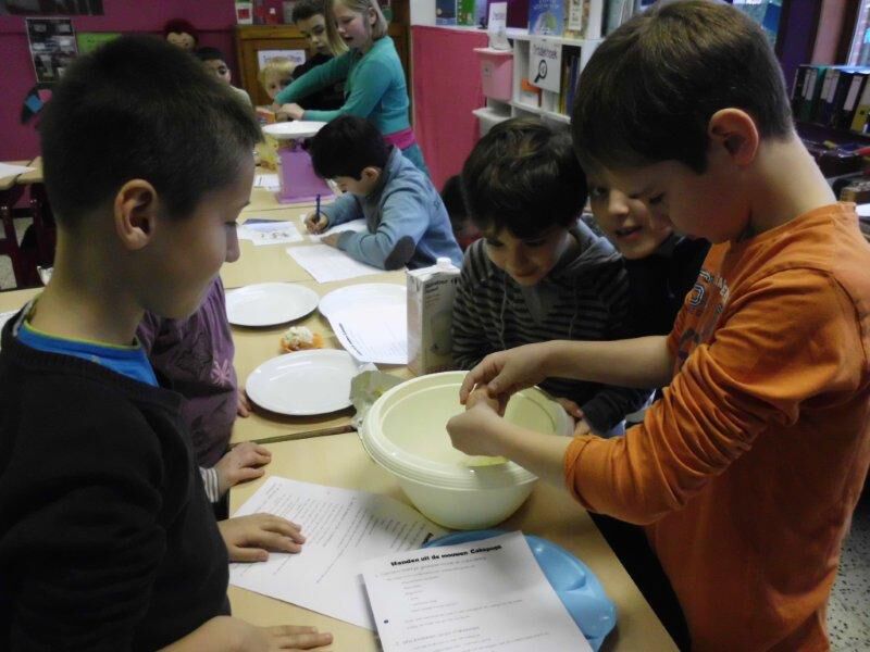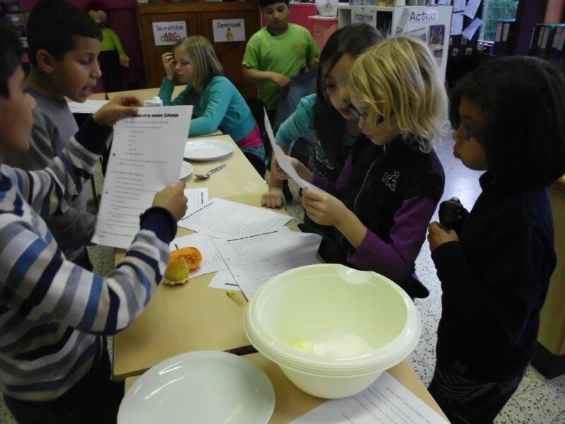 Vandaag deden we een lesje techniek ('Handen uit de mouwen', weet je nog....) We kregen allerlei ingrediënten, een weegschaal, mengkom, mixer en een stappenplan. Met ons groepje gingen we dan aan de slag om cakepops te maken. Ze waren overheerlijk (al vergat de juf wel een fotootje te nemen van ons eindresultaat).