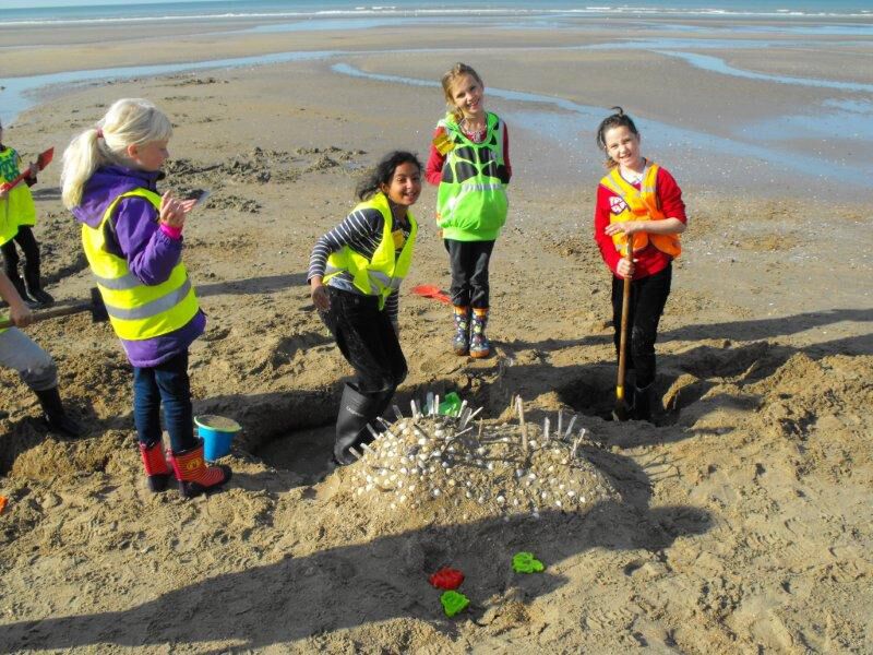 Net voor de middag namen we de tram richting De Panne en wandelden we naar natuurcentrum ‘De Nachtegaal’. Daar ontdekten we via een boekje het volledige centrum. Het was een leerrijke en toffe tocht waarbij we de zee, het strand en natuurlijk de duinen wat beter leerden kennen. Om twee uur stond de gids ons op te wachten en nam ons mee, de duinbossen in. Deze enthousiaste gids gaf ons wat meer uitleg over kunstwerken uit de natuur. Daarna maakten we in groepjes een natuur-kunstwerk (land-art). Sommige groepjes zagen het heel groot, anderen hielden het dan weer bescheiden.