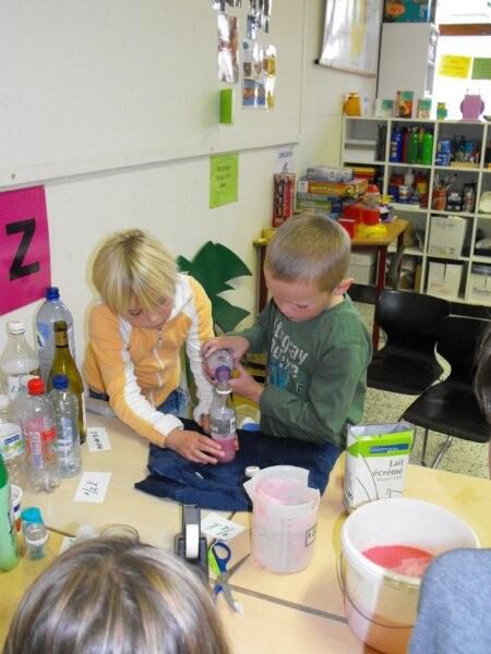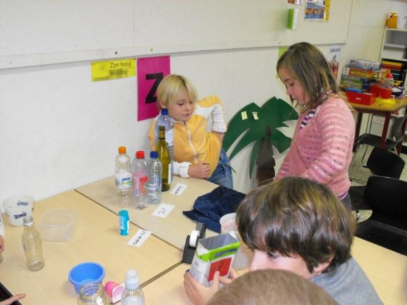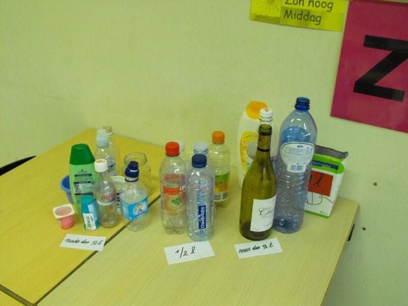 Vandaag hadden we een doe-les voor rekenen. We mochten allerlei flessen meebrengen en gingen ze dan sorteren. De eerste keer waren de drie categorieën: minder dan 1l – 1l – meer dan 1l.