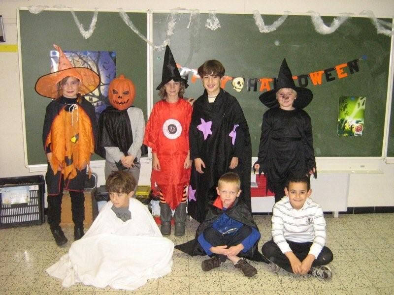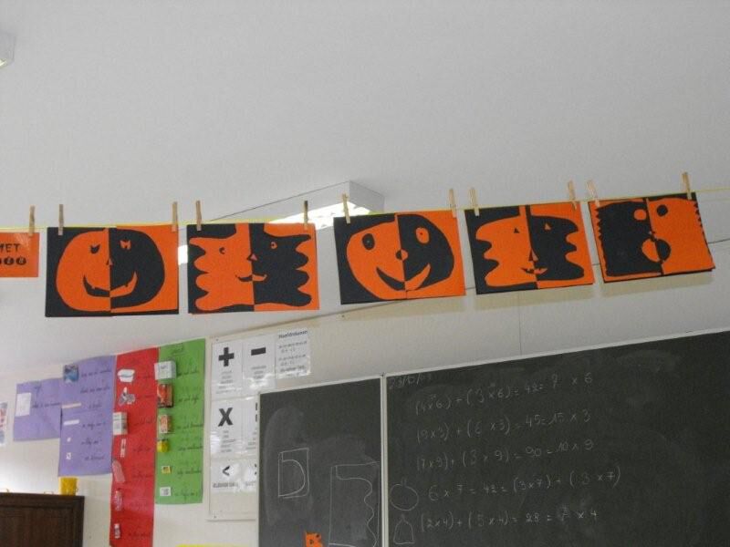 Vandaag vierden we Halloween op school. We kregen ’s ochtends een kaartje met een ‘griezelig’ symbool. Buiten op de speelplaats moesten we , door ons symbool uit te beelden, onze groep zoeken.