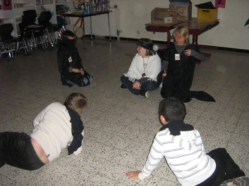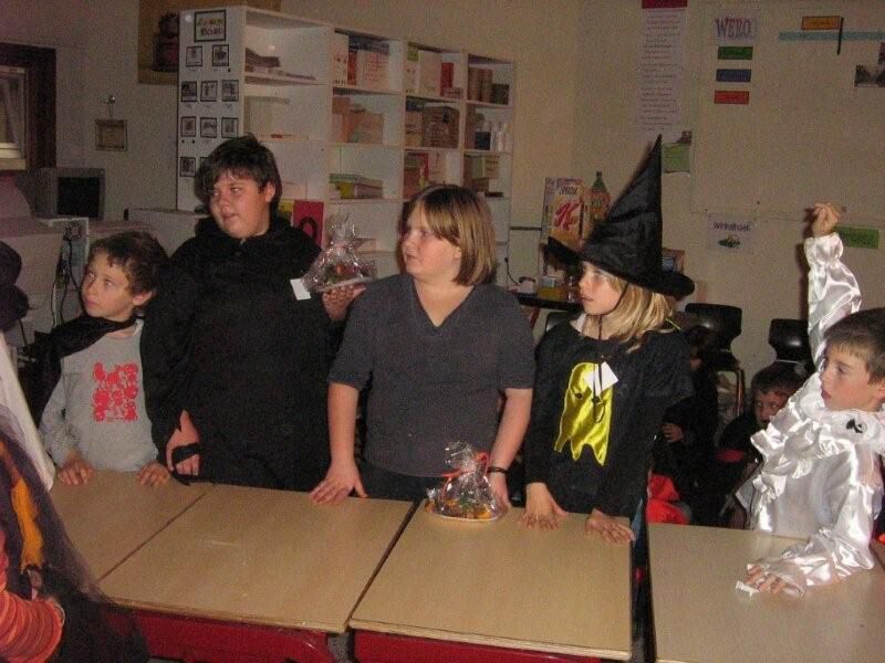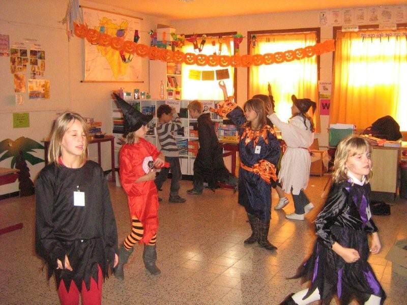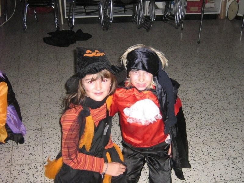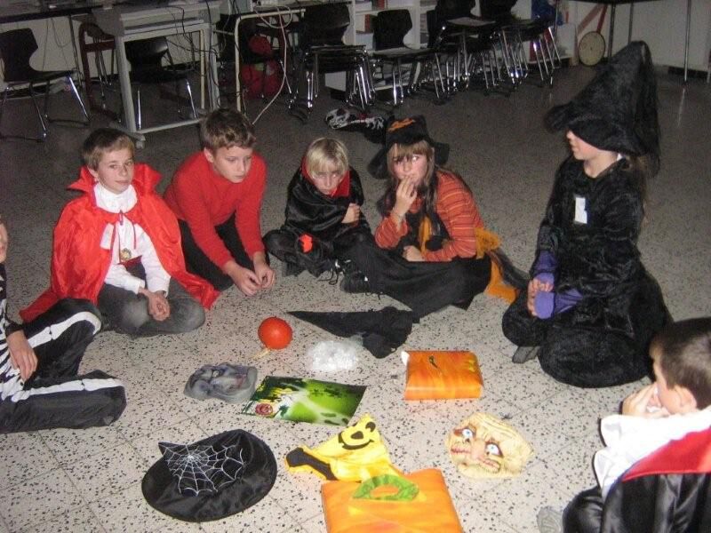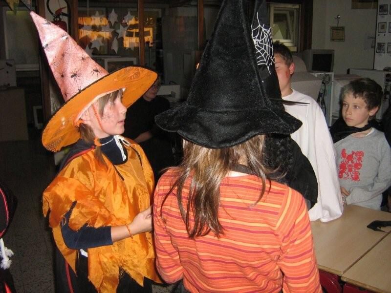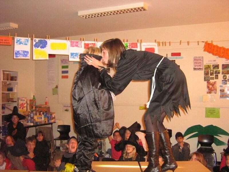 Bij onze juf begonnen we met de spelletjes vampiertje en vampiertikkertje. Daarna mochten we het verhaal van ‘De Heksen’ van Roald Dahl uitbeelden. We leerden ook enkele liedjes (Heksensabbat, De griezelige tovenaar en Zeven heksen) en sloten af met een kort spelletje.