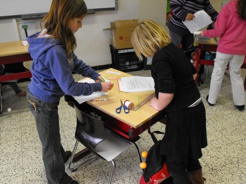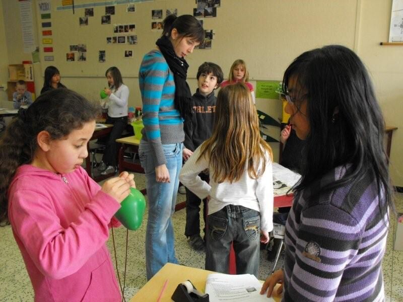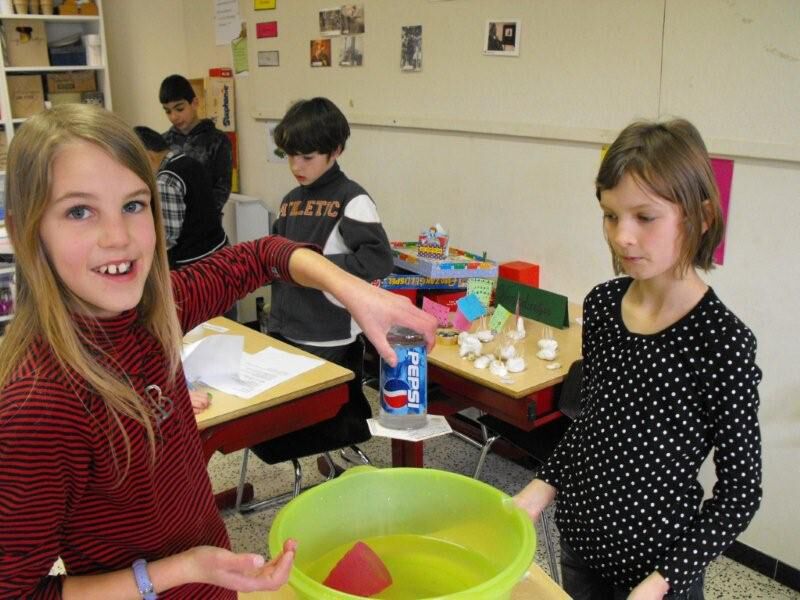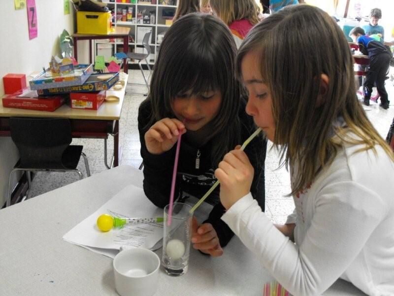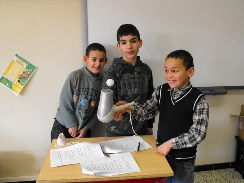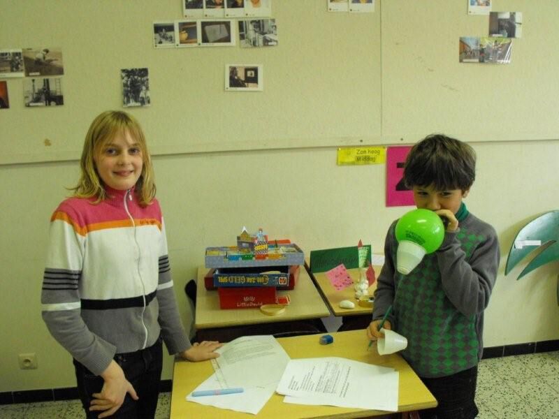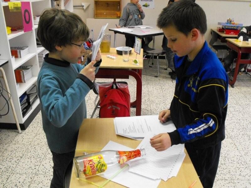 Toen het vierde erbij kwam, verdeelden we ons in groepjes. Er stonden 12 proefjes op ons te wachten. We moesten bijvoorbeeld een pingpongballetje uit een glas blazen, een flesjesgieter maken, een kaarsje uitblazen doorheen een fles,… We vonden het heel fijn en leerden héél veel bij.