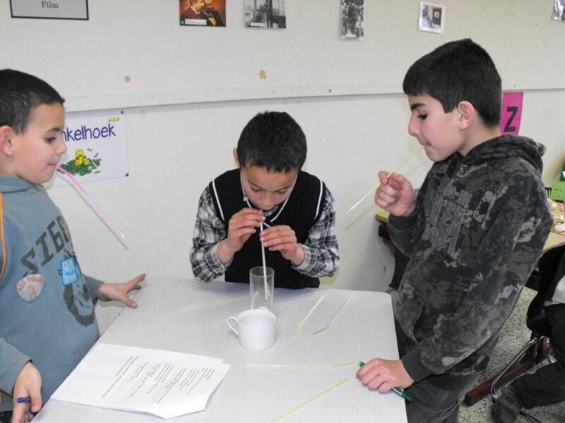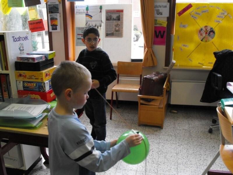 Eerst gingen we samen in de vertelhoek zitten. De juf legde ons kort uit wat luchtdruk was en hoe hard de lucht eigenlijk drukt. Zo konden we de proefjes beter verstaan.