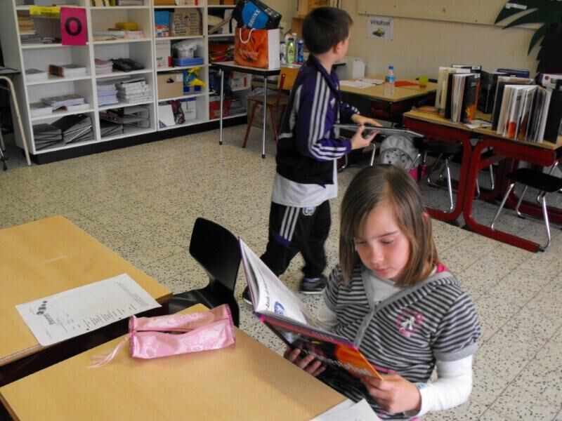 Vandaag kwam het tweede leerjaar op bezoek in onze klas. (Wij brachten een bezoekje aan het vierde leerjaar).