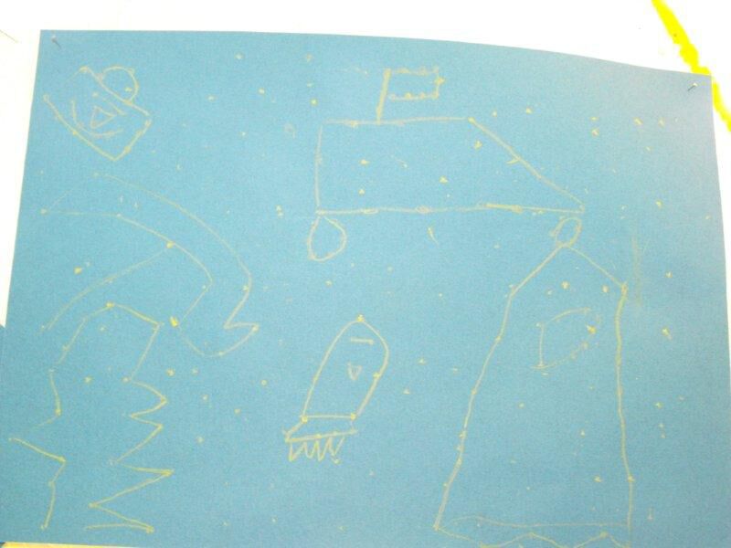 We werkten het thema ruimte af. Het was een enorm boeiend thema. Hierbij nog enkele kiekjes.