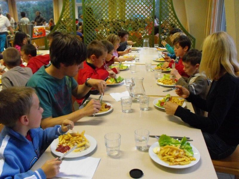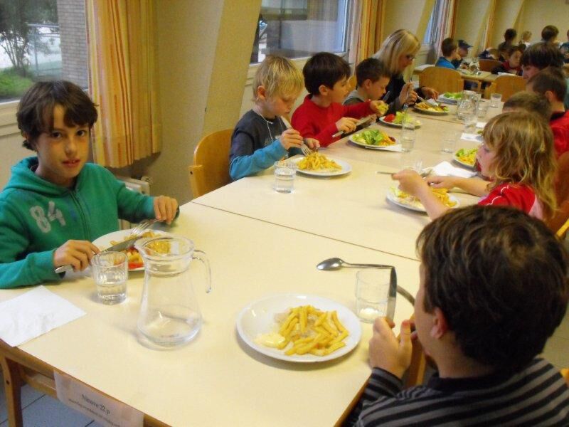 Terug in het Reigersnest moesten we ons allemaal douchen. Lekker fris konden we dan onze benen onder de tafel schuiven en overheerlijke vol-au-vent met frietjes eten. We aten onze buikjes helemaal rond (maar dat hadden jullie zeker al gedacht J).