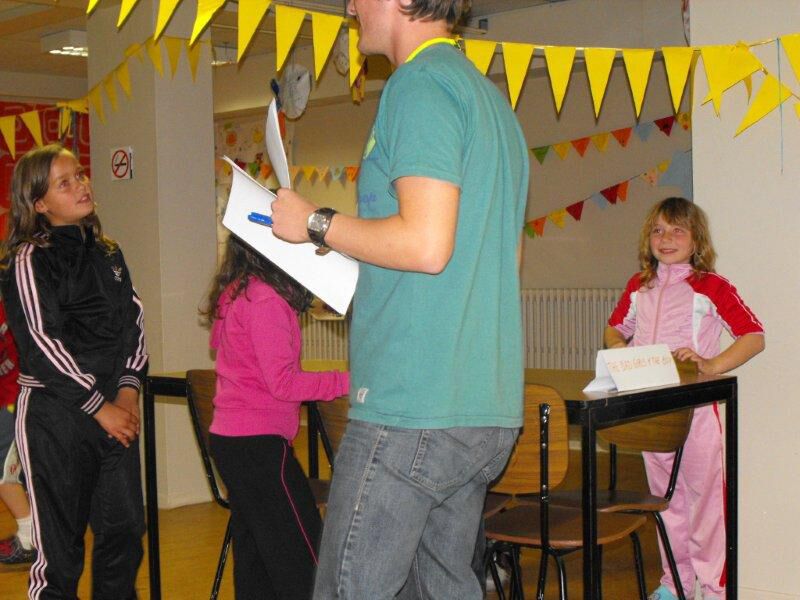 ’s Avonds speelden we het spel ‘één tegen allen’, eigenlijk was het ‘allen tegen dé drie’. We werden door de juffen en de meester uitgedaagd om een aantal (samen-knap) opdrachten tot een goed einde te brengen. Zo moesten we een klerenketting van 5m maken, een piratennaam voor elk van ons bedenken, een olifantenslinger maken,…. Uiteraard wonnen we en werden we als beloning getrakteerd op fruitsap en chips.