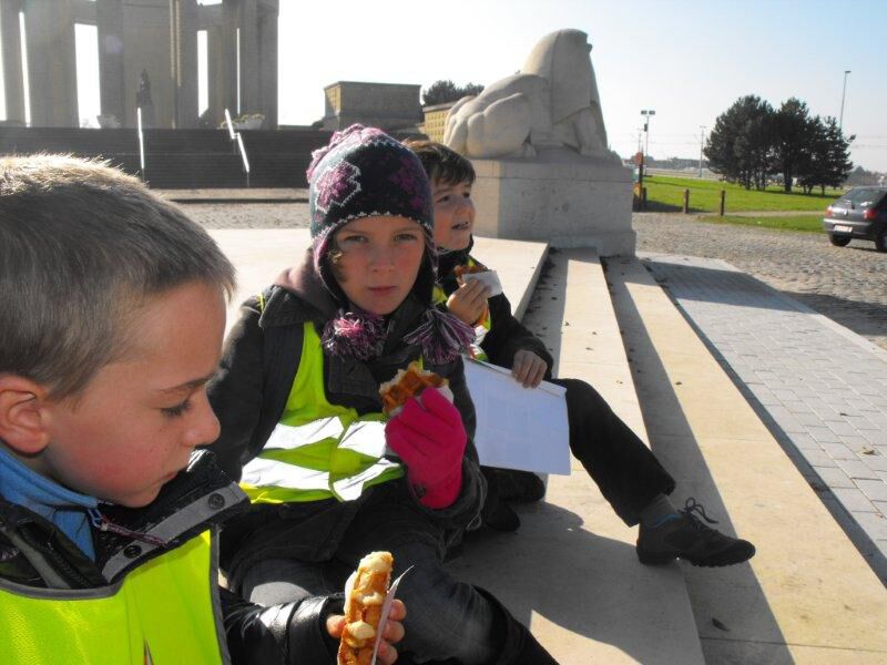 Vandaag waren we reeds vroeg uit de veren (sommigen al om halfzeven).  Tegen acht uur stonden we helemaal klaar om te ontbijten (boterhammen, beleg, cornflakes, peperkoek, yoghurt,…). We maakten onze picknick en stapten richting tram. Eens aangekomen in Nieuwpoort nam meester Michiel de leiding over. Hij vertelde ons wat meer over de vismijn, de soorten vissen en  het monument van Albert I. Omdat we zo flink geluisterd hadden werden we, door de meester, getrakteerd op een Luikse wafel. Overheerlijk!
