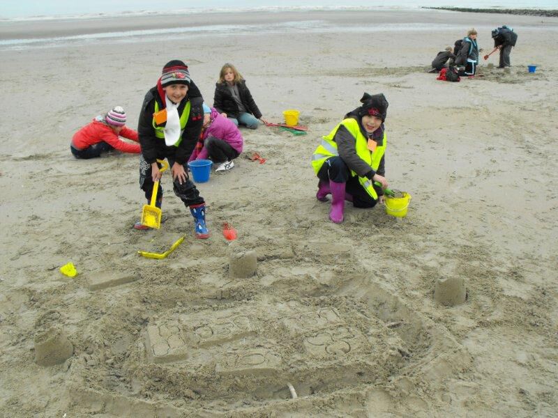 Nadat we onze picknick hadden verorberd (twee overheerlijke pistolets, een drankje en een appel) ging onze zandkastelenwedstrijd van start. We verdeelden ons in kleine groepjes en begonnen te graven. Een echte winnaar was er niet. Elke zandkasteel kreeg een ‘naam’. Zo was er het stoerste, het grootste, het hoogste, het meest beveiligde,…. zandkasteel. Maandag krijgt elk van ons hiervoor een heus diploma. Joepie!