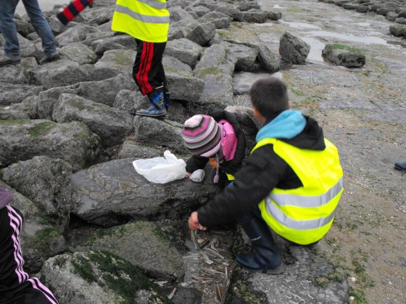 Na een deugddoende nacht en een lekker ontbijt waren we klaar om naar het strand te gaan. We namen de zeekoffer van Faldido mee en gingen op speurtocht. We ontdekten groeiseries,determineerden schelpen (vraag vrijdag maar aan je spruit wat dit is) en bestudeerden de golfbreker. We vonden zelfs een echte zeester en een zeeanemoon (dit had onze juf zelfs nog nooit in het echt gezien).