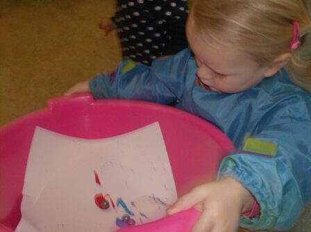 en maakten we een mooi kunstwerkje door knikkers door verf te laten rollen...