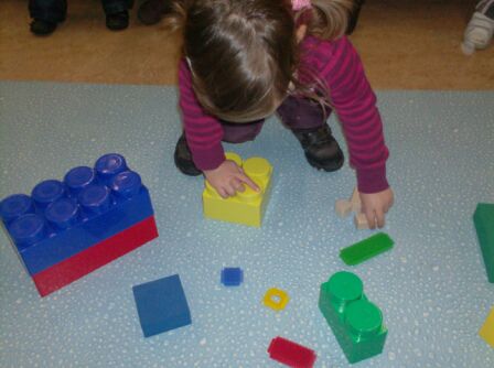 We ontdekten grote blokken in verschillende kleuren en kleine blokken! Zachte blokken en harde houten blokken... Hier hebben we enkele sorteerspelletjes mee gespeeld en...