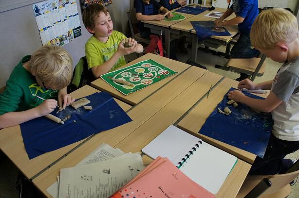 Alweer een leuke week achter de rug. Waarschijnlijk gaat het allemaal zo snel, omdat we heel wat plezier maken! Dat moet kunnen natuurlijk. Naast al het werken hebben we ook muziek gemaakt, gezongen en ons zelfs ontpopt tot beeldhouwers. Auguste Rodin is er niets tegen! Hieronder weer enkele sfeerbeelden.