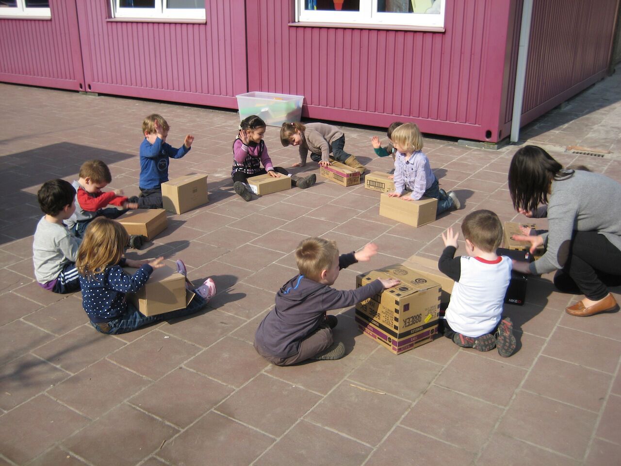De laatste 2 dagen van ons thema dozen. Donderdag hebben we geturnd met een dozenmannetje. We deden zelf ook dat we een dozenmannetje waren. In de klas kregen we muziekinstrumentjes, gemaakt van allerlei doosjes. Hier hebben we fijn mee gespeeld. We moesten juiste figuren door een doos duwen, dit was soms even nadenken. En natuurlijk nog leuk gespeeld met alle dozen in onze klas. Vrijdag zijn we buiten gegaan en hebben we een orkest gevormd. We waren echte muzikanten. Op het einde van de dag mochten we nog eens naar tik tak kijken. Dit blijft mooi om te zien. Voila, ons dozenweek zit erop. Juf Elke heeft ons een super leuke week bezorgd.