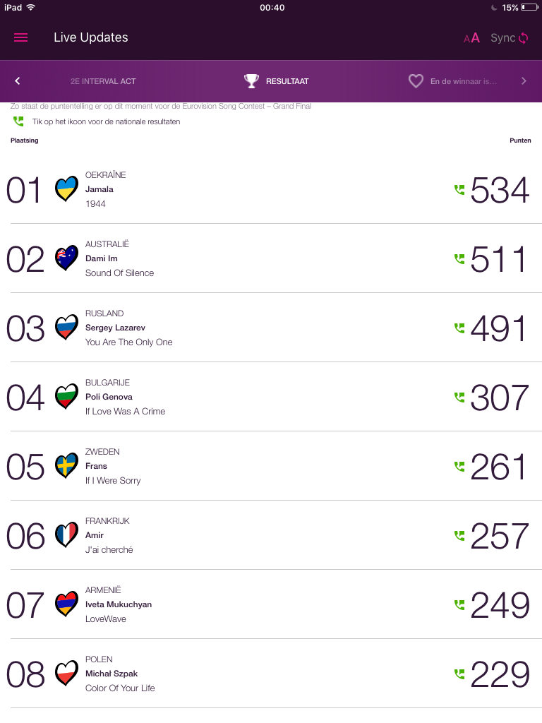 maar punt 1: belgie. Heel de puntentelling kregen we bijna geen punten. Dit heeft ze niet verdiend. Spijtig maar niets aan te doen. maar ze had echt wel in de top vijf mogen zitten.