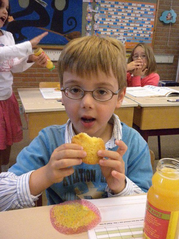 We hadden terug een feestje in klas, want er was iemand jarig. Jaja, het was de verjaardag van Korneel. We smulden van de lekkere cakejes, mmmm wat waren die lekker Hiep hiep hoera voor Korneel.
