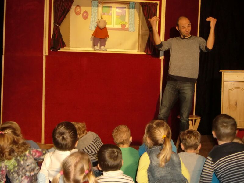 Elke vrijdag spelen juf Caroline en ik poppenkast voor onze 2 klasjes. Steeds weer een moment om naar uit te kijken... Vandaag ging het over Jules die in het bos allerlei gekke dingen tegenkwam !!!