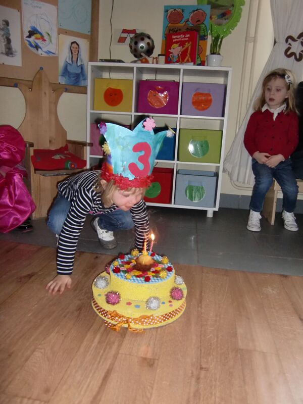 Een feestje voor Amber !!! Jawel hoor,Amber is zondag jarig maar vandaag kreeg ze een feestje in de klas. Ze ging supertrots in de verjaardagsstoel zitten en genoot van alle aandacht. Alles erop en eraan natuurlijk ; taartje, snoepjes, kaarsjes en een klein cadeautje !!! Geniet nog van je feest Amber en nog een dikke kus !!! Zondag is ook onze juf jarig en daarom mogen jullie maandag de koekjes /fruitjes thuis laten want we eten frietjes in de klas !!!!!