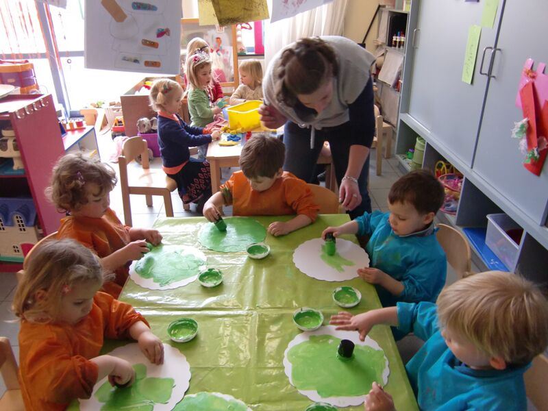Hier kunnen jullie ons volop bezig zien aan ons cadeautje voor papa...maar we verklappen nog niet wat het gaat worden. Jullie wisten waarschijnlijk al dat juf Caroline bij ons in de klas komt op maandag-, dinsdag-, woensdag- en donderdagvoormiddag. Op de foto kunnen jullie juf Katrien zien; die komt bij ons op vrijdagvoormiddag.