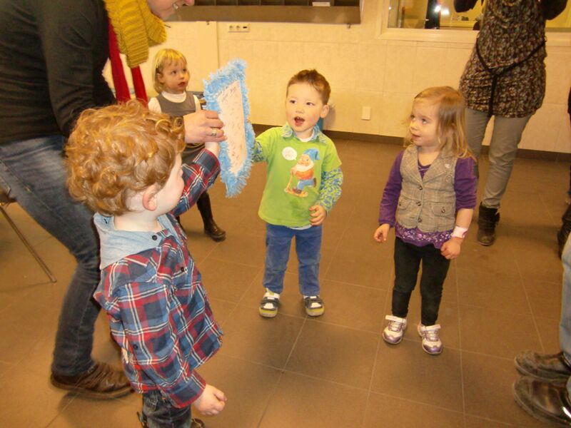 Wat een heerlijke voorstelling kregen we vandaag te zien zeg... Jules kwam voor ons in een hele grote poppenkast zijn verhaal vertellen. Jules kreeg verschillende schoenen aan en deed daar telkens iets geks mee. Sportschoenen om te dansen en te springen, stevige schoenen om mee te springen op verschillende kleuren blokjes, laarzen om in de regen te stappen en uiteindelijk pantoffels om naar bed te gaan. We hebben van elk moment genoten !!!