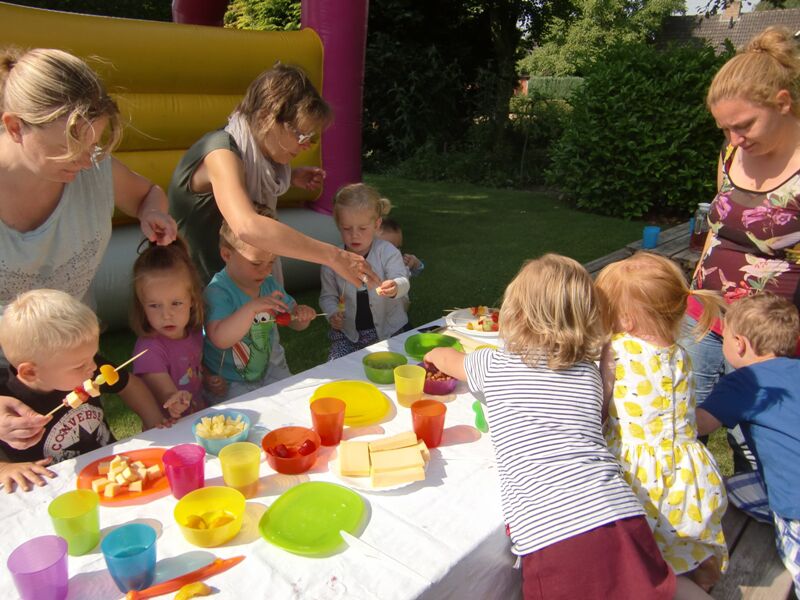 Vandaag mochten we bij de oma van Xavi gaan spelen. Wat een leuke dingen waren daar zeg !!! We mochten op het springkasteel, konden fietsen en glijden van de glijbaan,... Maar we mochten ook zelf een lekker tussendoortje maken. Mmm fruit aan een stokje !!! Wat een feest...