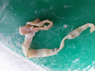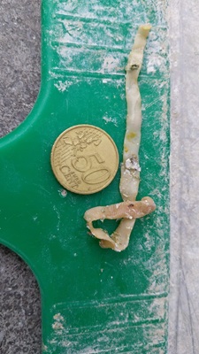 Een duivenliefhebber zond mij een foto door van een worm gevonden op het duivenhok. Hoogst waarschijnlijk gaat het om de lintworm met de gezegende naam :