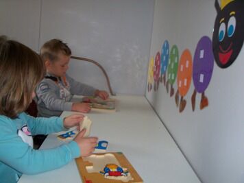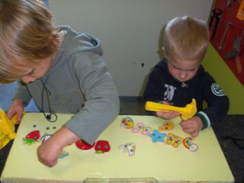 Na twee maanden vakantie kende elk hoekje succes. De poppenhoek, de auto's, experimenteren met speeldeeg, schilderen, ... Wie zou puzzelkampioen worden? Onze puzzelrups is duidelijk een stimulans om ook kleuters die puzzelen minder leuk vinden aan het puzzelen te krijgen.