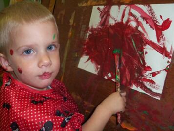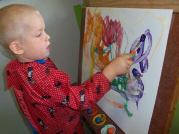 Na ons bezoek aan de brandweer probeerden we vuur te schilderen en een brandweerwagen te tekenen. De grote ladder bovenop de wagen had blijkbaar indruk gemaakt. Maar hoe teken je dat?