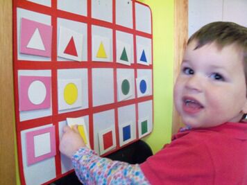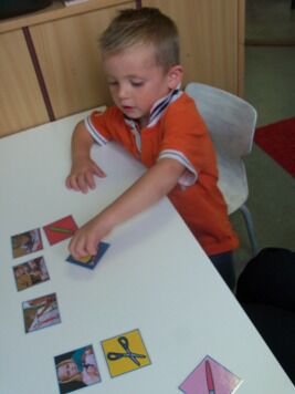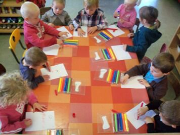 We kleurden elk ons symbooltje in ons lievelingskleur. In de kring konden we via deze aantekening 'lezen' wat het lievelingskleur van elke kleuter was.