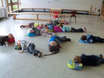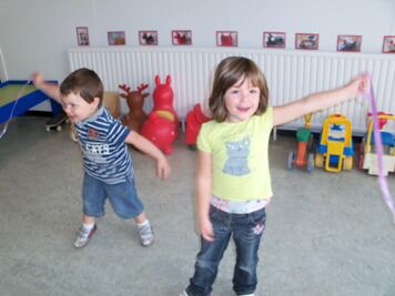 Een sfeerbeeld uit de turnles bij juf Lies: